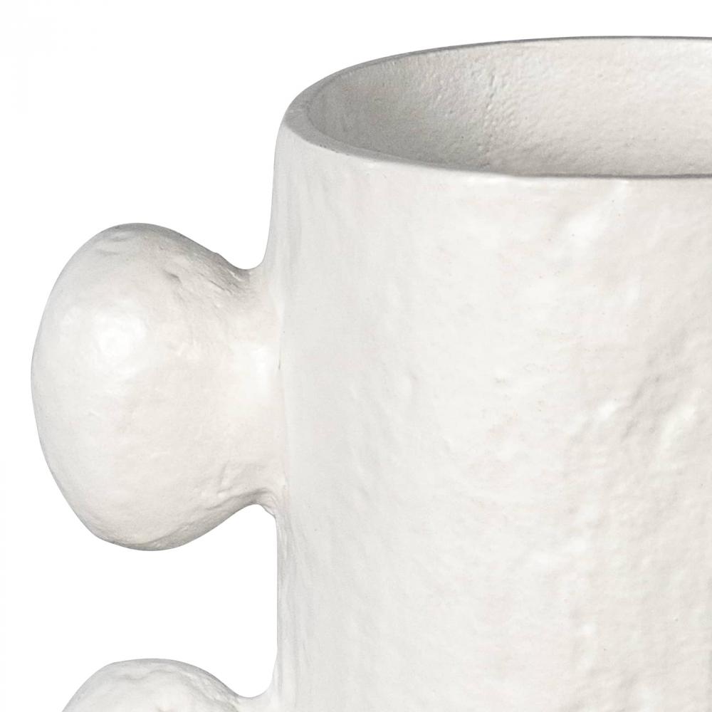 The Sanya Metal Vase is rich with primitive, sculptural beauty. Sanya's matte white, paper maché-inspired finish is the perfect match for a modern space with natural elements. Place Sanya in an eclectic living room, boho bedroom, or anywhere a bit of bold, hand-crafted style is needed.