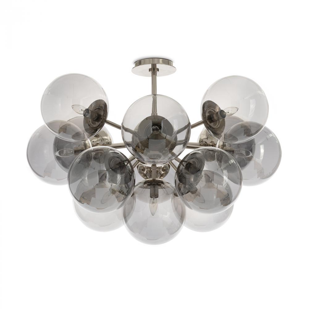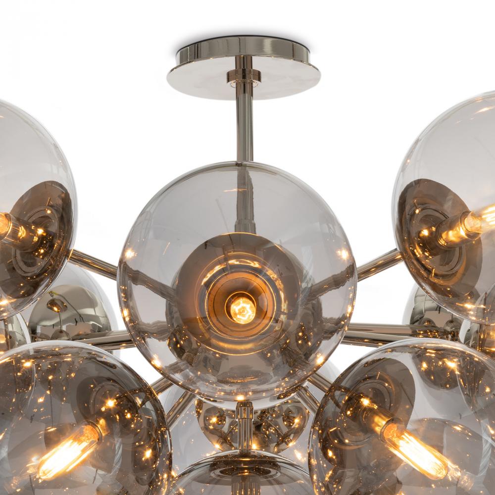 The Shine Flush Mount epitomizes contemporary sophistication with a touch of mid-century modern influence. The fixture features smoked glass globes that nod to the 60s or 70s, set with polished nickel accents. Ideal for turning underutilized spaces into vibrant living areas, Shine transcends conventional lighting, making a statement that resonates.