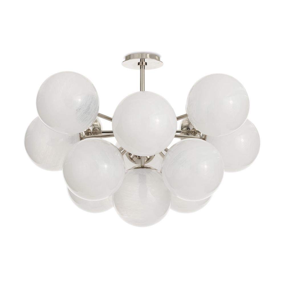 The Shine Flush Mount epitomizes contemporary sophistication with a touch of mid-century modern influence. The fixture's white swirled glass spheres are classic and glamorous, set with polished nickel accents. Ideal for turning underutilized spaces into vibrant living areas, Shine transcends conventional lighting, making a statement that resonates.