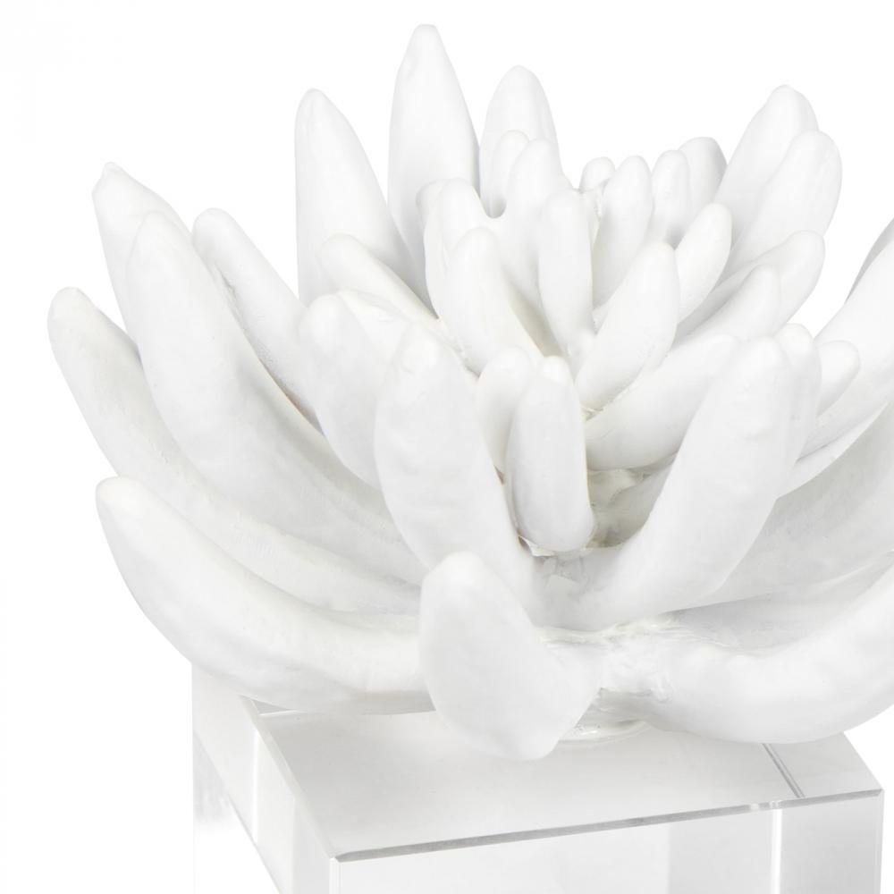 Create a focal point on your coffee table, credenza, or bookcase with this matte white succulent planted on a crystal base. The perfect piece to add a touch of glamour and style to your home.