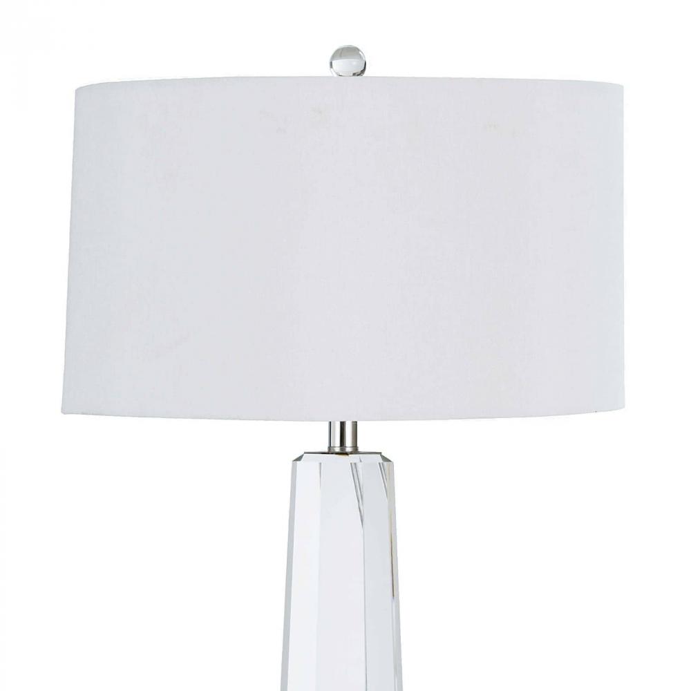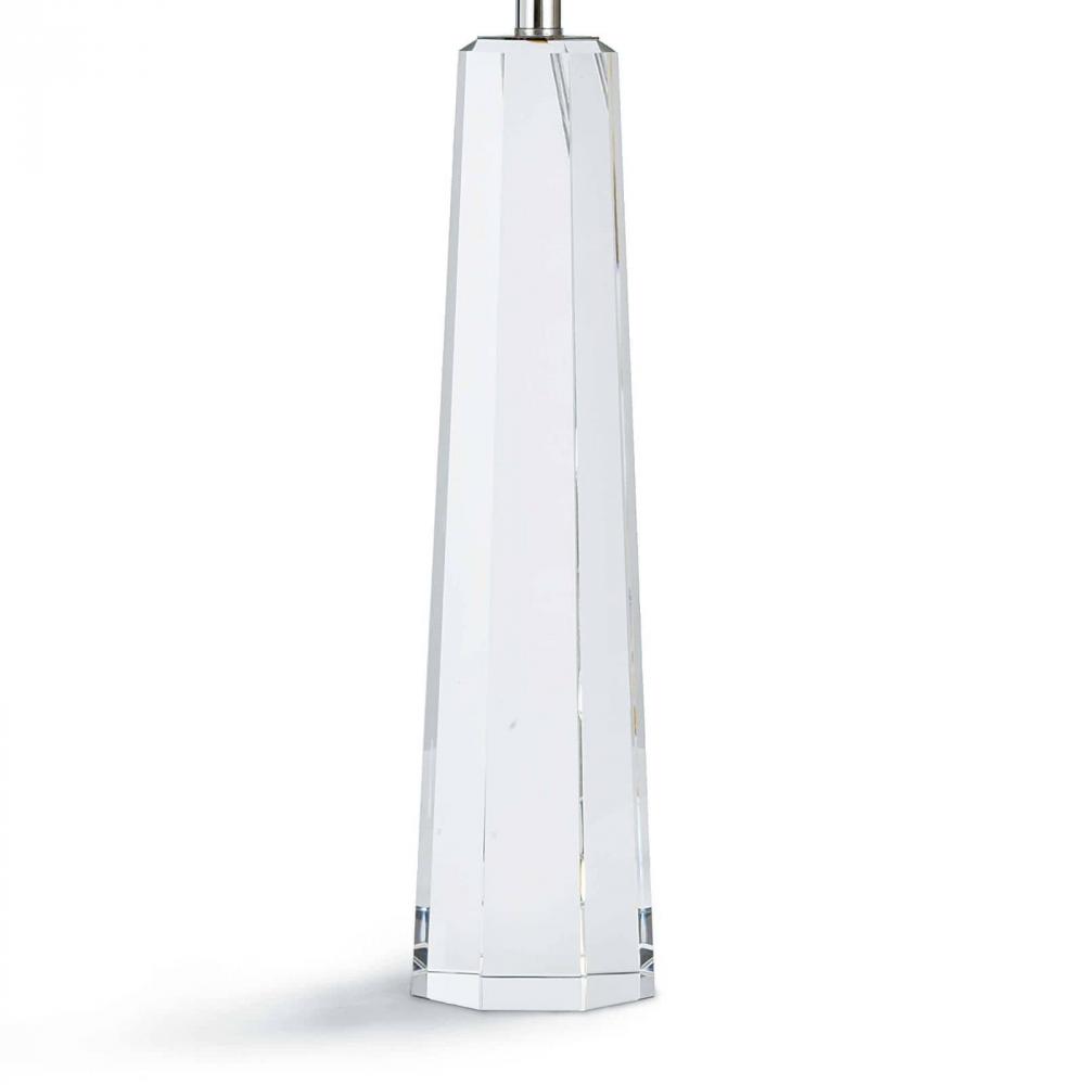 The stunning Tapered Hex Crystal Table Lamp is a contemporary and modern addition to your home. This exquisite crystal lamp features a tapered crystal base that adds a touch of glamour to any room, while the crisp natural linen shade provides a soft and warm glow. Held in place by a crystal finial, the lamp's elegant geometric profile creates a stunning statement that will surely catch the eye.
