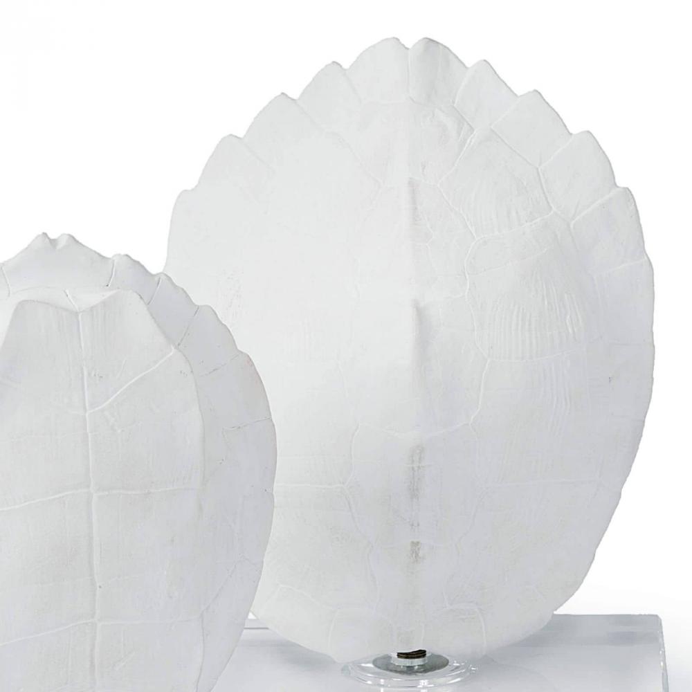 A modern accent that would be stunning on a coffee table in your living room, white-washed turtle shell replicas are mounted vertically on crystal bases for a touch of wildlife and a touch of glam.