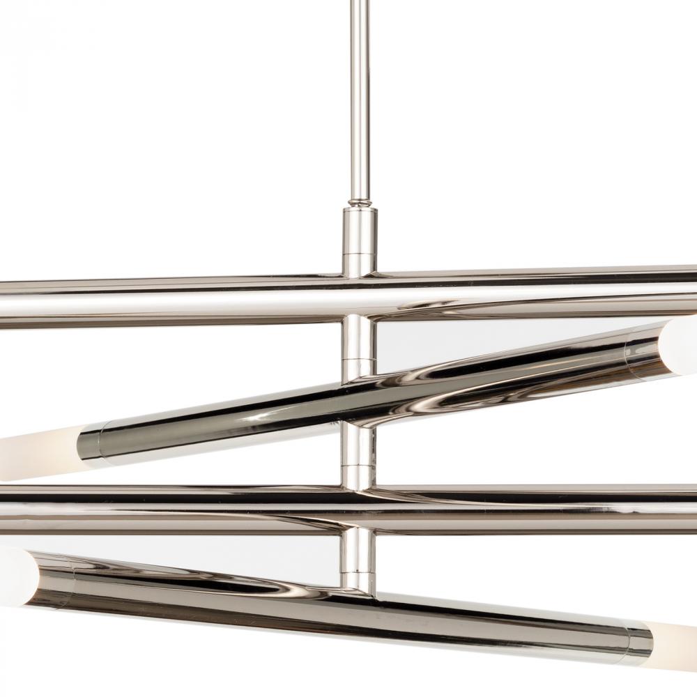 Four arms swivel around a center point on our modern, linear Wick Chandelier. Create a unique, dynamic design in your modern loft, entryway, or over a dining table. Wick's frosted acrylic bulb covers add the perfect amount of diffused light to your space.