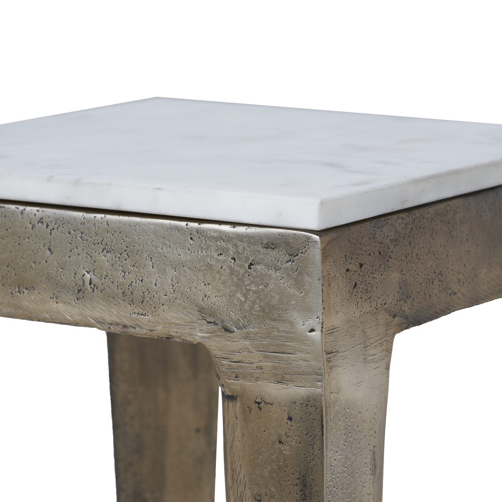 Introducing the Abby Side Table in Antique Brass - a durable and elegant addition to your space. Made from strong cast aluminum, this table can handle your items with ease. Its shiny antique brass finish not only looks beautiful but also keeps it looking great despite everyday use. Designed to fit in with any decor, this side table adds a touch of sophistication wherever you place it. Whether you need a spot for your essentials or want to add some style to a corner, the Abby Side Table brings both quality and charm to your home effortlessly.