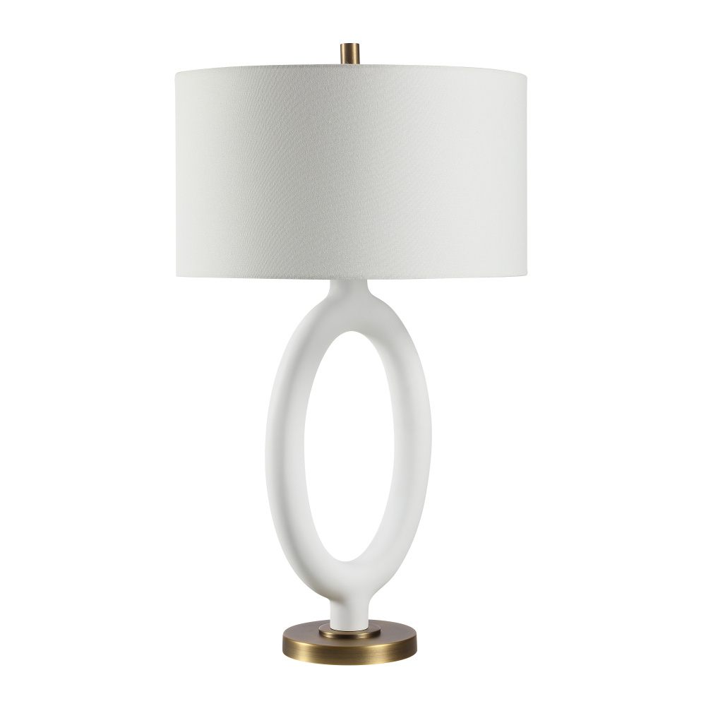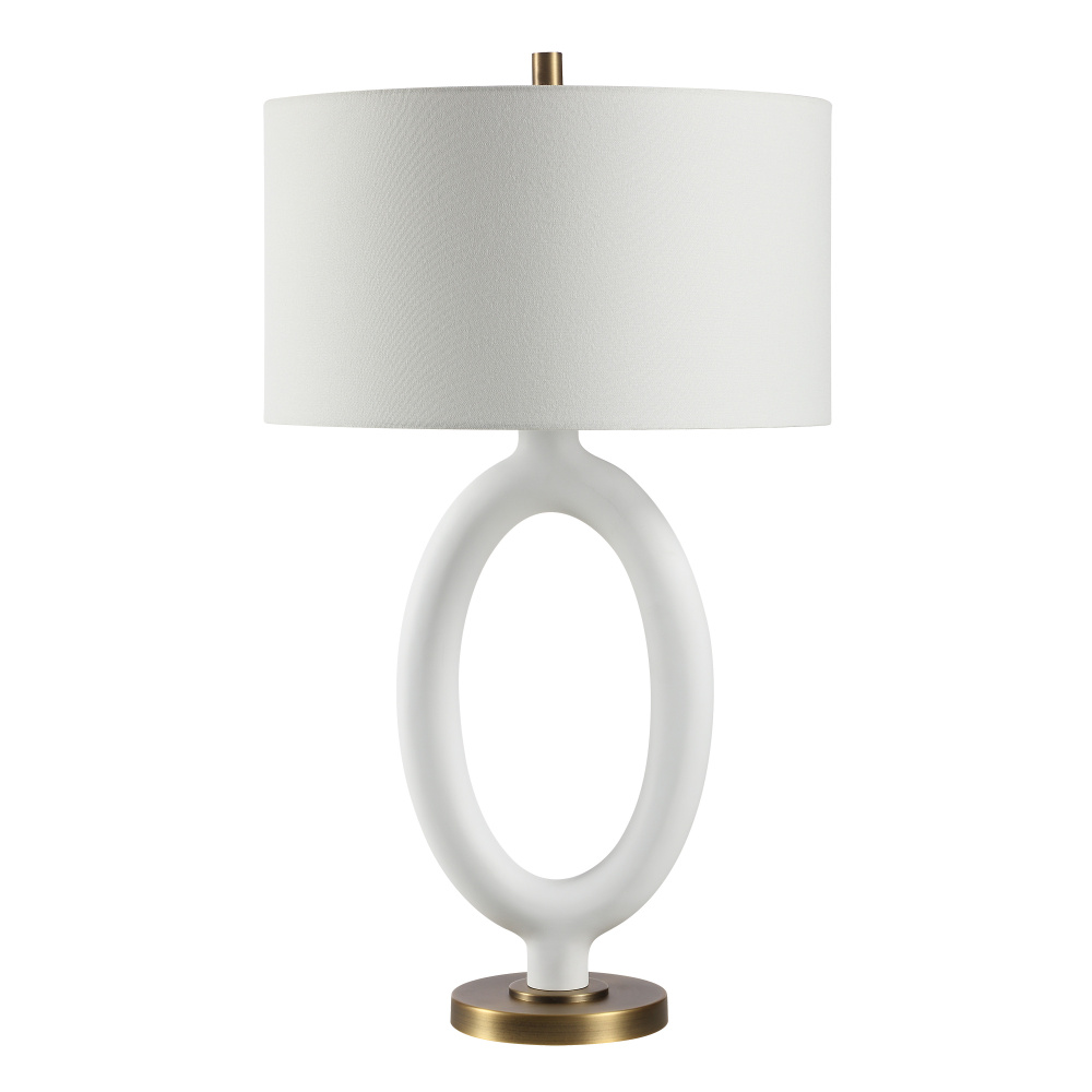 Designed with a simple silhouette and a modern aesthetic, this stylish table lamp will create a striking focal point in any interior. Combining a hand-painted white finish, dark antique brushed brass details and an off-white linen drum shade, this lamp is a perfect choice to light up any room with a welcoming glow.