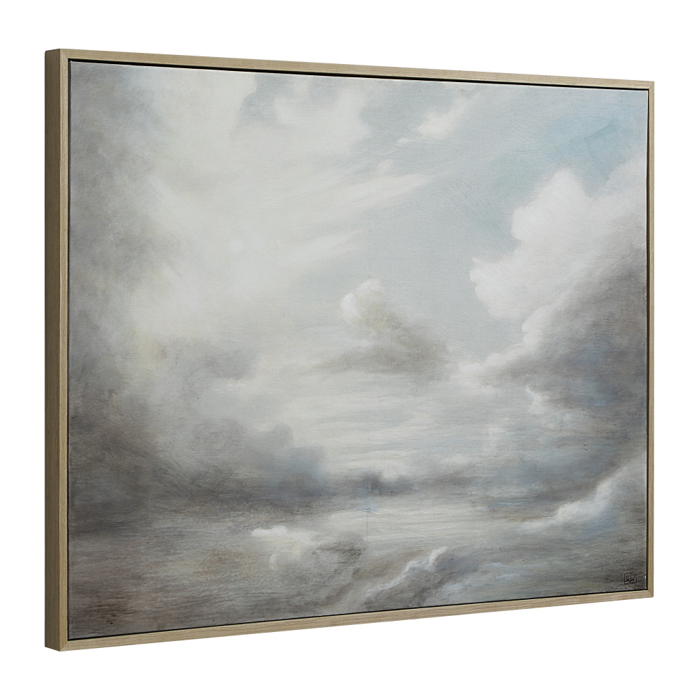 Put your design savvy on display with this stunning canvas art. Hand painted with plenty of texture, this wall art’s dreamy cloud-and-light-filled blue sky will bring interest and style to any transitional home or office. A stunning cream-painted frame puts a finishing touch on this eye-catching piece that’s ready to complete the look of any space.