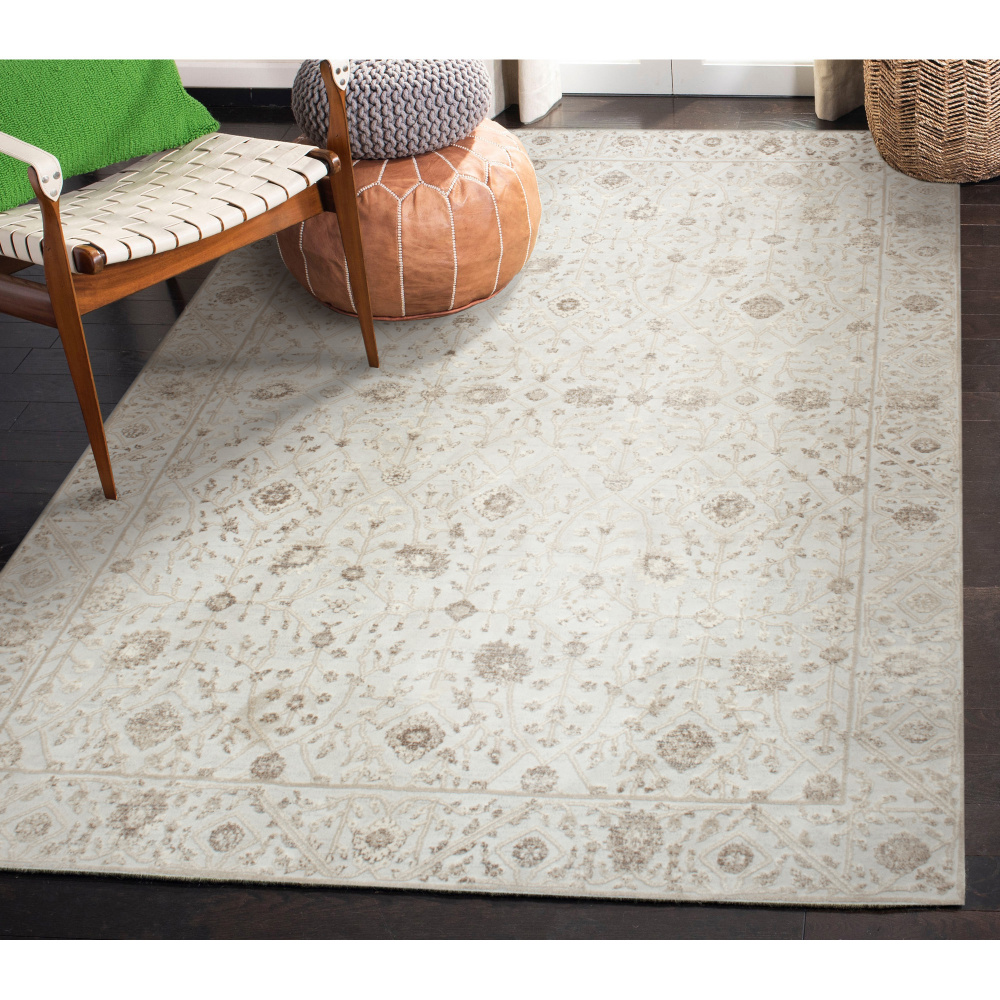 Architectural inspiration meets modern-day aesthetics in this rug design. An ever so subtle blush tone holds a soft energy that matches the physical feeling of the rug to the touch. The bronze details help tell the story of the piece, no matter the rug’s dimension.
