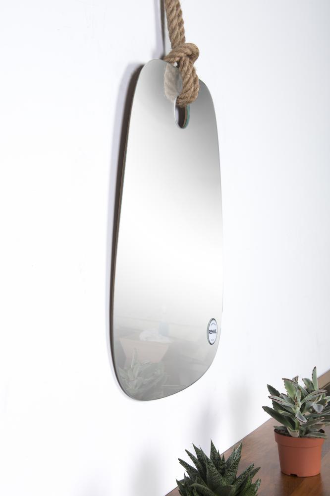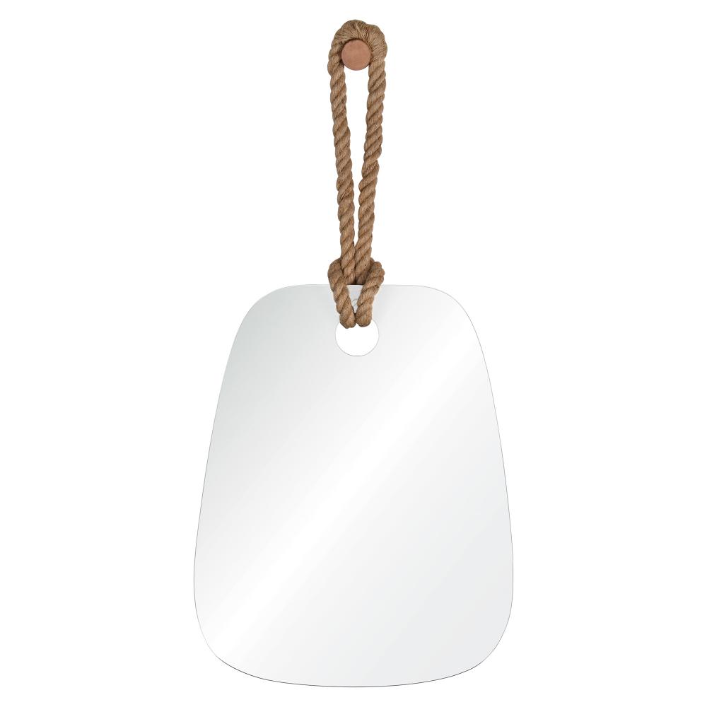 Suspended from a wooden peg by twisted hemp rope, the eclectic design of this wall mirror is the perfect combination of fun and functional. The curved, freeform shape and small scale of the mirror lends itself to unique placement throughout the home - perfect in a powder room for applying makeup or in a master bath, checking a close shave.