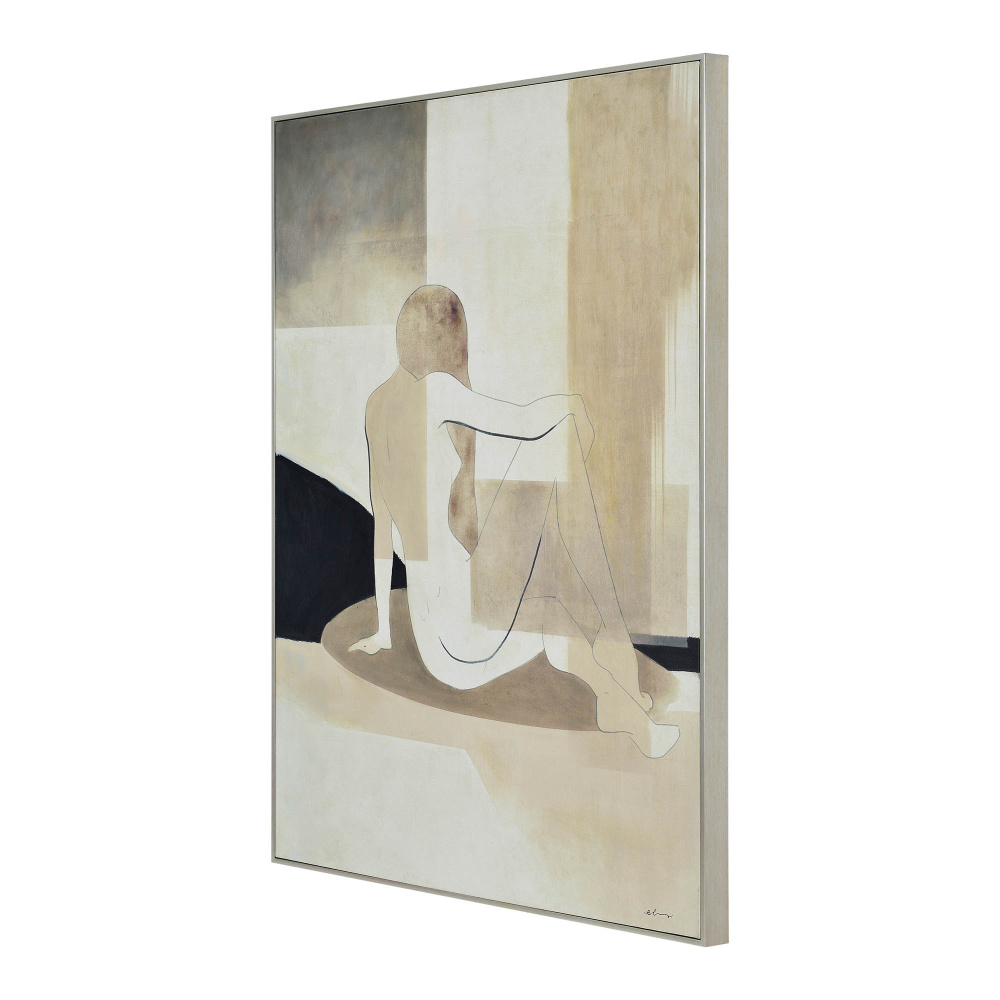 Modern minimalist design meets the classic feminine portrait in this canvas art painting. With a calming and on-trend beige palette, this piece elevates the interior while also adding an air of elegance. Best styled with sleek contemporary furnishings, the angles within the design are brought out by the angles of the structures in its midst.
