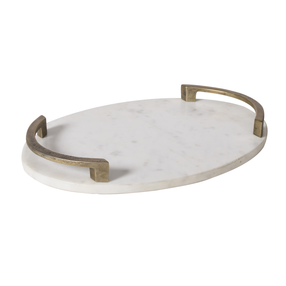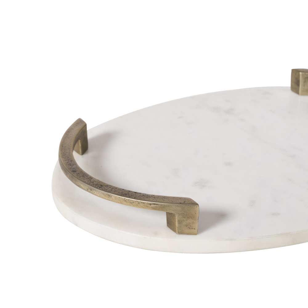 Adding a stylish decorative tray to a room is an effective way to show off your design savvy. This piece is crafted from Banswara marble, known for its lustrous quality and enduring style that gets an extra shot of beauty thanks to antique brass-plated handles. Feature it on any furniture piece as the base of a beautiful vignette for a quick and easy update in any room.
