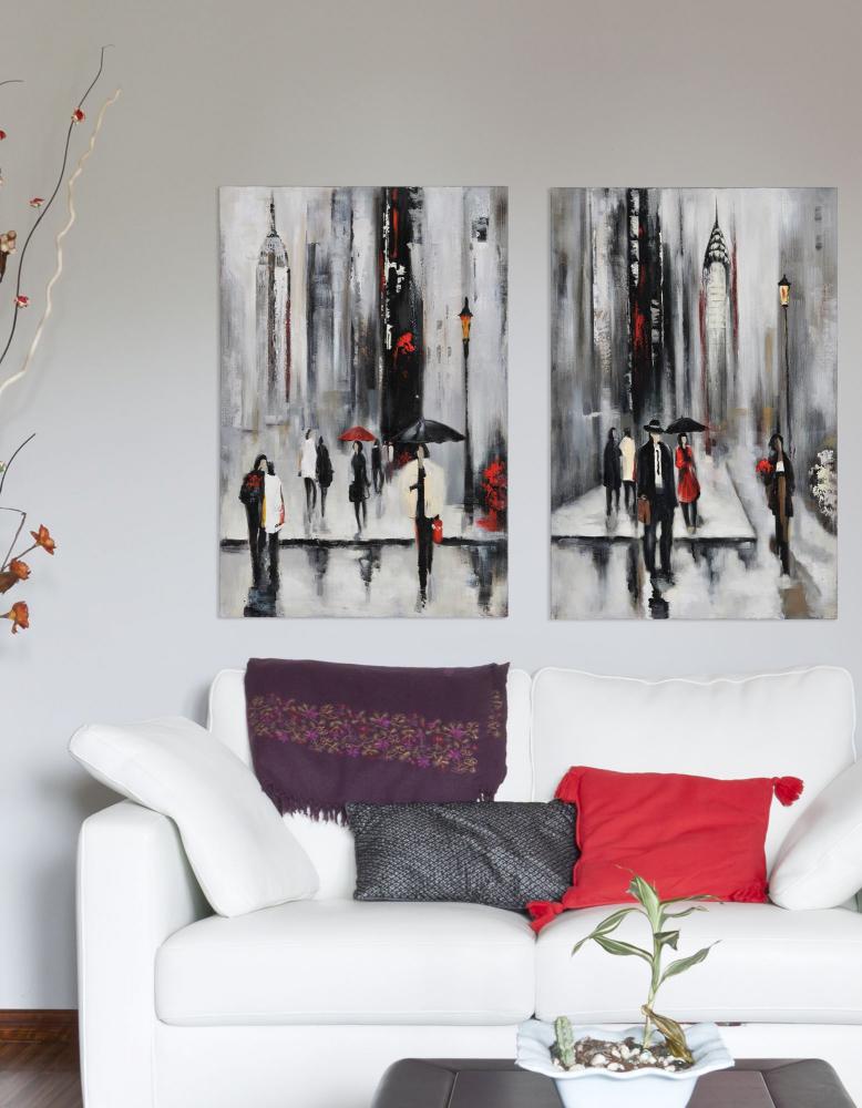Bustling City features classic imagery with the modern colors of black, white and red making it the ideal piece to merge with any Decor. Hand-painted on gallery-wrapped canvas