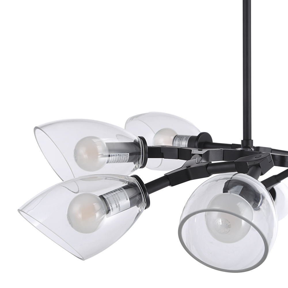 Sometimes a light fixture provides the finishing touch on a project and other times it is the kickoff point from which all other elements in a room gather inspiration. The Camino ceiling light fixture is a prime example of the latter. Its sleek iron body punctuates the space with a shot of matte black drama while 8 tapered glass shades cast warm ambient light to set the mood in any modern interior. Designed with a sprawling construction, it has a generous span of 54” making it the ideal fixture for placement over a dining or kitchen table or anywhere else in need of a bold lighting statement.