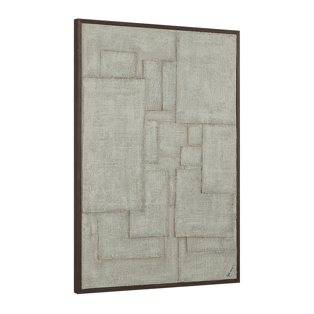 Complete the look of any neutral interior with this stylish collage style wall art. Featuring textural burlap touches and a sand beige finish, this hand-painted set of two framed cotton canvas pieces is set to elevate any contemporary home or office.