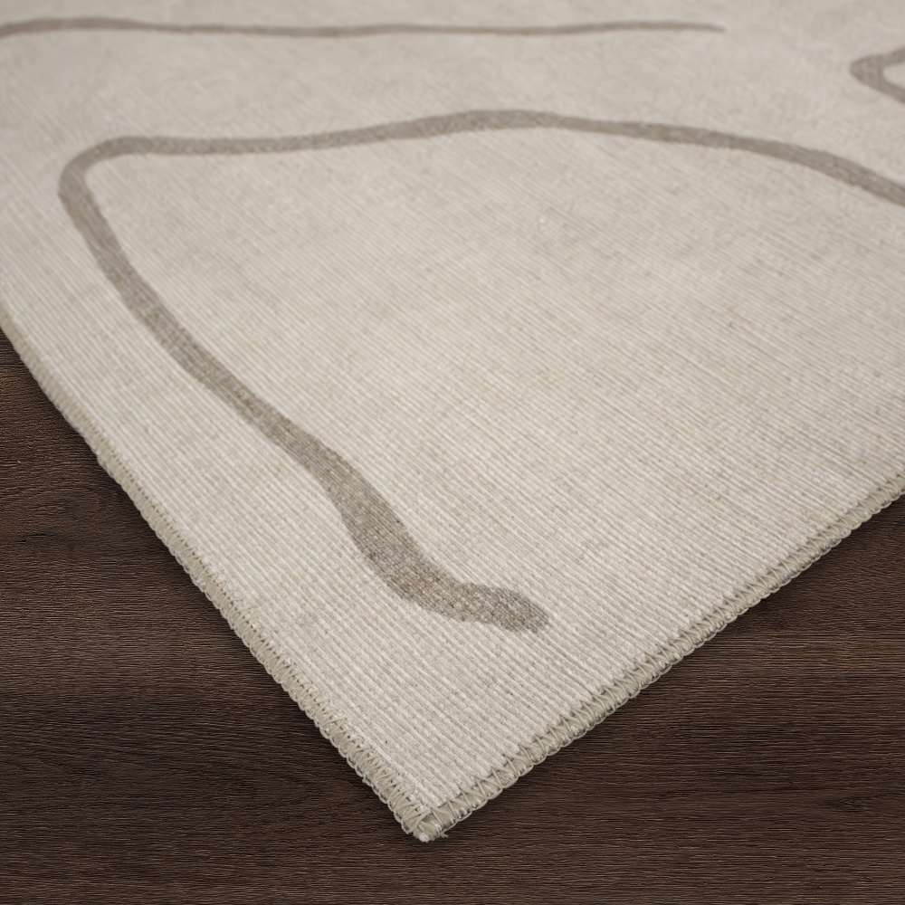 Introduce this stunning abstract area rug into any contemporary interior in need of a modern update. Featuring a free-form pattern and a cream and beige color scheme, it will deliver its laid-back attitude anywhere it lies. Designed for ease of care and durability, this rug is available in your choice of four sizes and is a great choice for busy homes and offices.