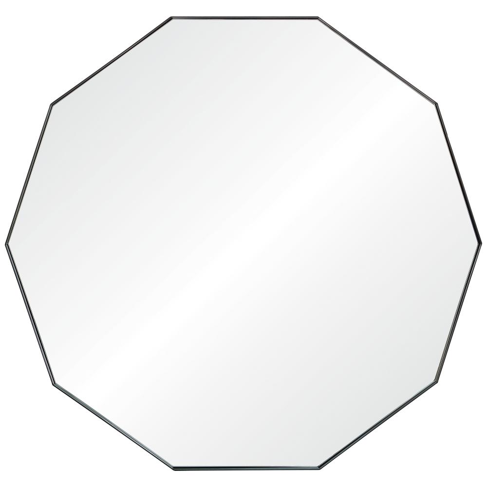 The angular design of this decorative wall mirror brings modern reflections to new dimensions. The 10-sided decagonal iron frame is finished in Matte black, with oversized proportions that exude glamour. A contemporary accent piece that plays with geometric principles of shape and scale, this large-format wall mirror hangs over couches and console tables, capturing every reflection in the room.