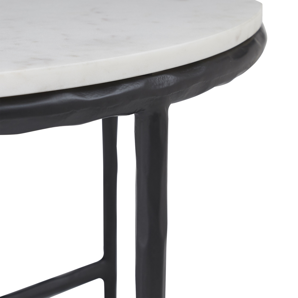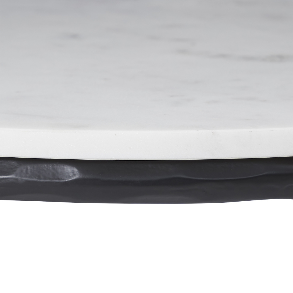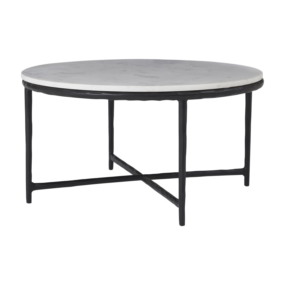 Traditional style gets a modern update in this stunning coffee table. Crafted from cast aluminum with a matte black finish for a hand-forged look, it has the sturdiness and timeless appeal worthy of taking centre stage in your interior design project. Finished with a Banswara marble top, this table will add a touch of sophistication to any home or office.