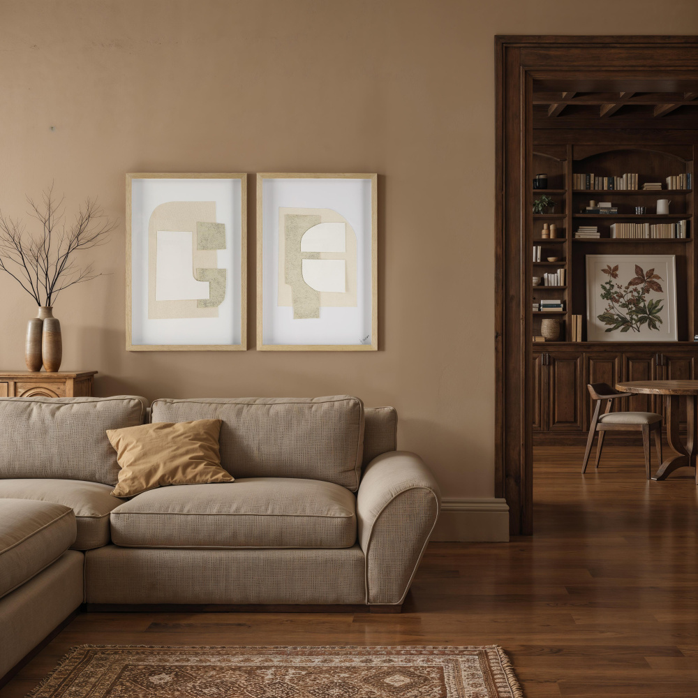 Get ready to be impressed by how much style this pair of collage wall art brings to your design project. On-trend yet timeless, each light oak-framed piece features the perfect balance of simple shapes and tonal texture, making them great additions to any modern space.