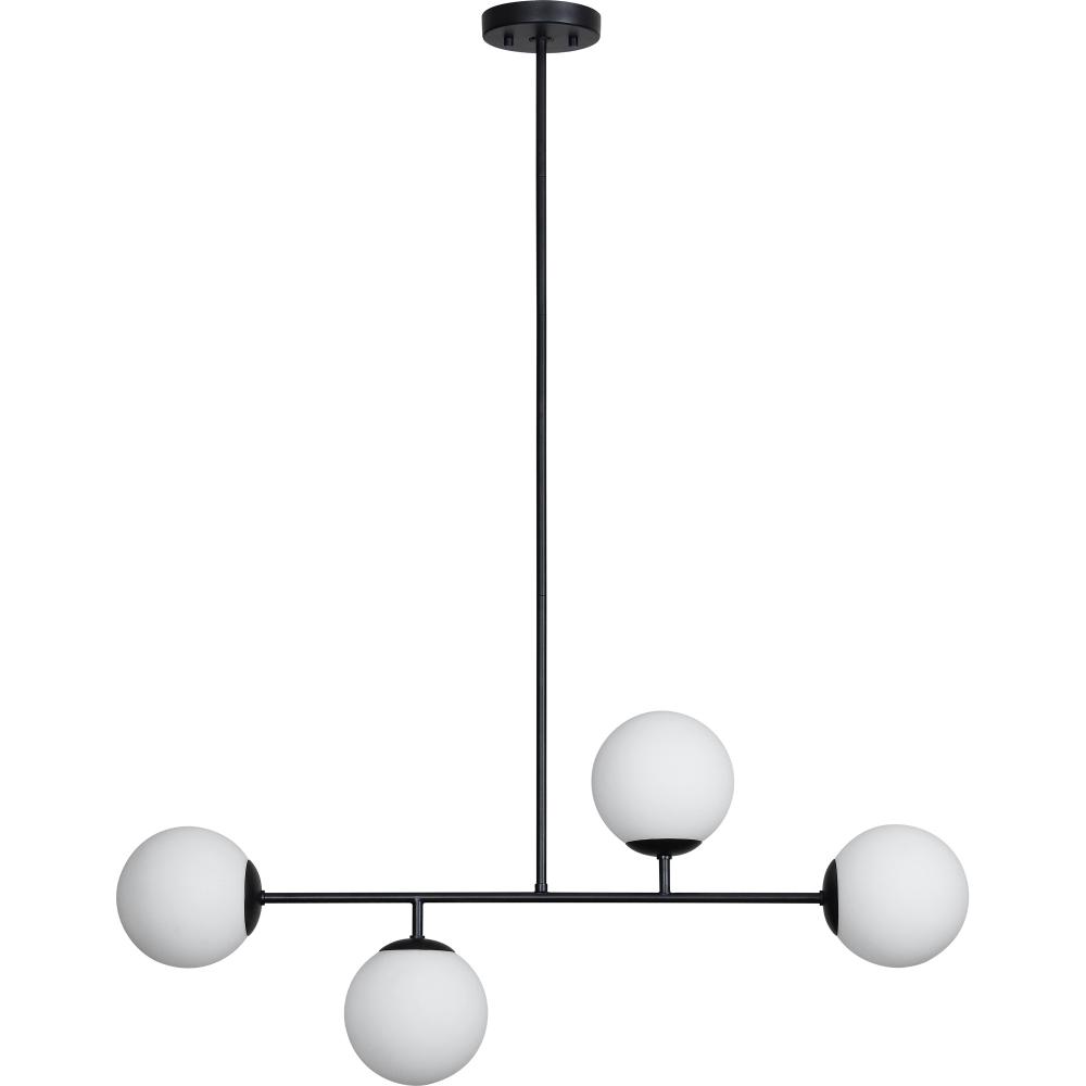 At once retro and contemporary, this ceiling fixture injects personality into the home through its innovative design. It casts a lengthy line of light amid the mid-century modern kitchen or living space. The gleaming quality of the white frosted glass balls is only elevated by its contrasting matte black powder-coated iron base.