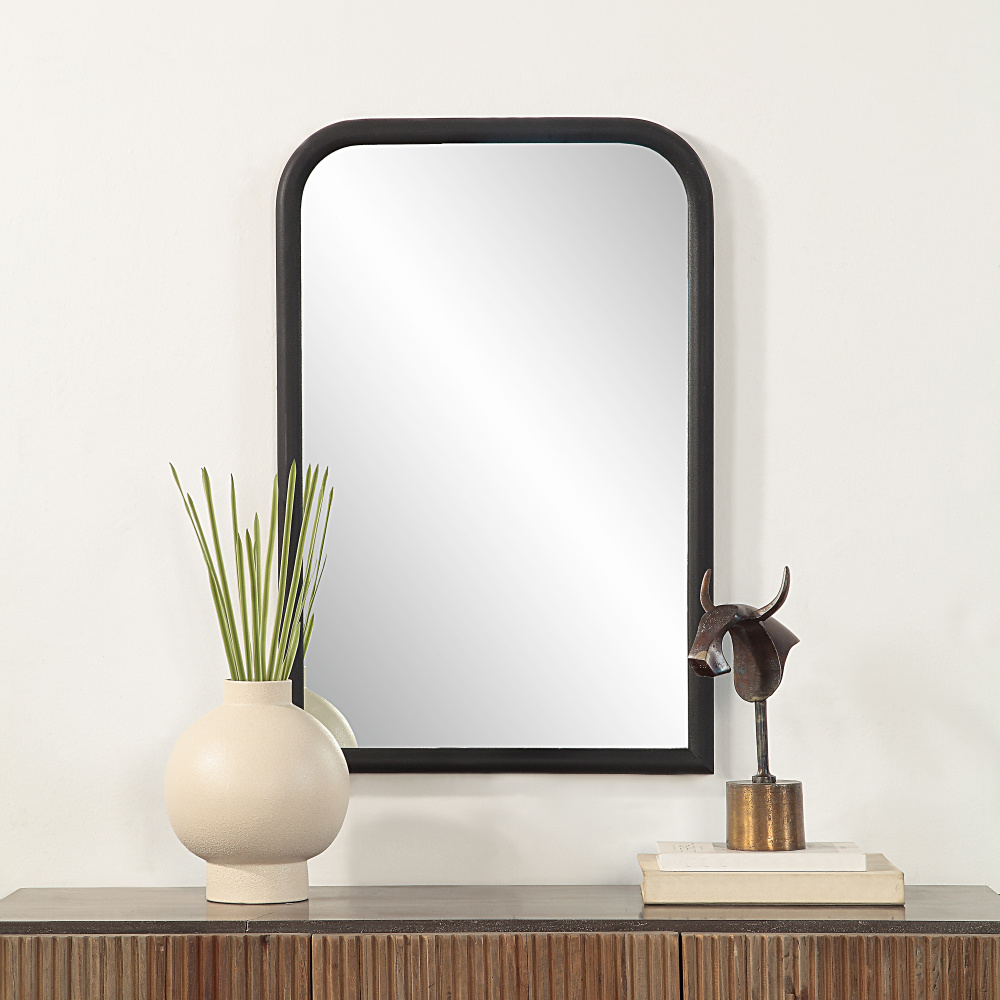 The Dovima 36" Tall Arch Rectangular Mirror in Textured Black is the ideal addition to any contemporary living space. Made with utmost precision, the mirror boasts a sleek, textured black frame design that adds a sophisticated touch to any room. The full-length rectangular mirror offers versatility, allowing you to view your entire outfit before stepping out the door. Hanging this masterpiece is a breeze with its optimized design for easy vertical placement, and boasts a D-Ring hanging system that makes installation effortless. The mirror is the perfect combination of form and functionality, making it a must-have piece for any modern home.