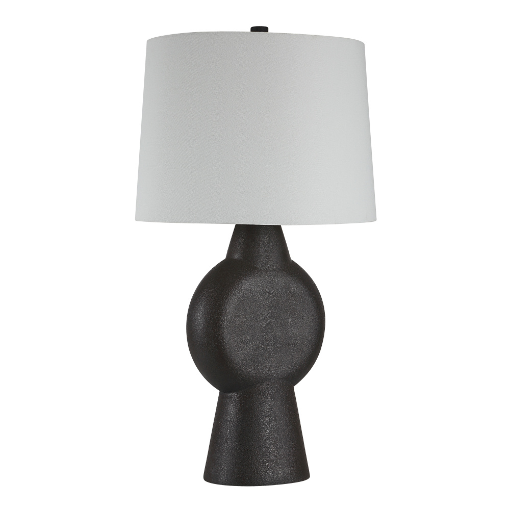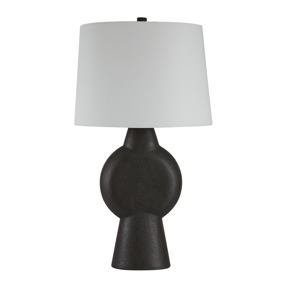 Undeniably chic style is served with this stylish modern table lamp in the mix. Crafted with a sculpture-like silhouette, a stone black hand-painted finish and a clean-lined white shade, it’s poised to hold an artistic presence in minimalist and transitional spaces, alike. Add it to your project as a testament to your design savvy.