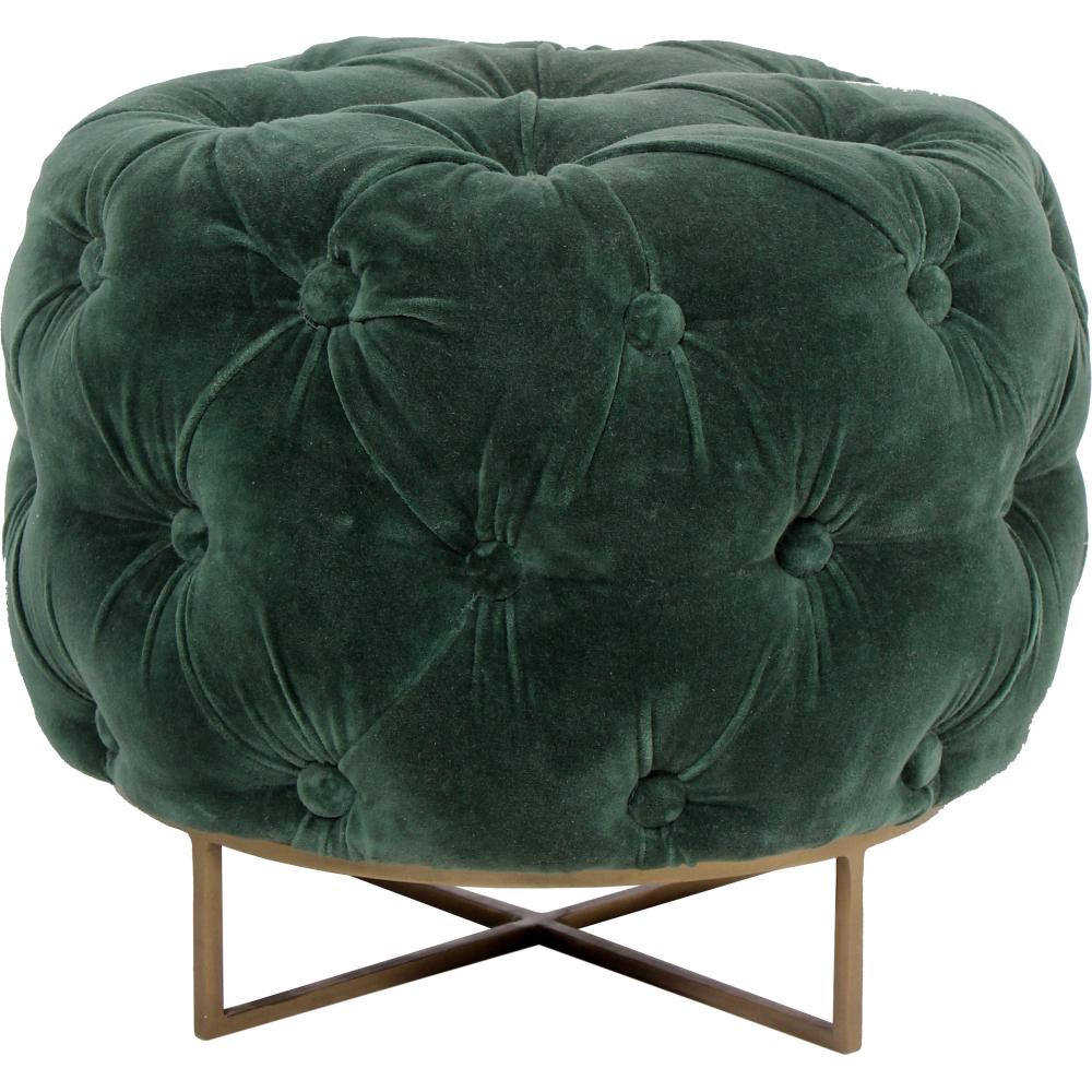 A play on dimensions and contrast, this stool is full of character. The jewel-toned velvet fabric gives it a regal quality while the antique brass bottom adds a mid-century touch. The soft, round tufted design serves as the perfect complement to the sleek, strong base.