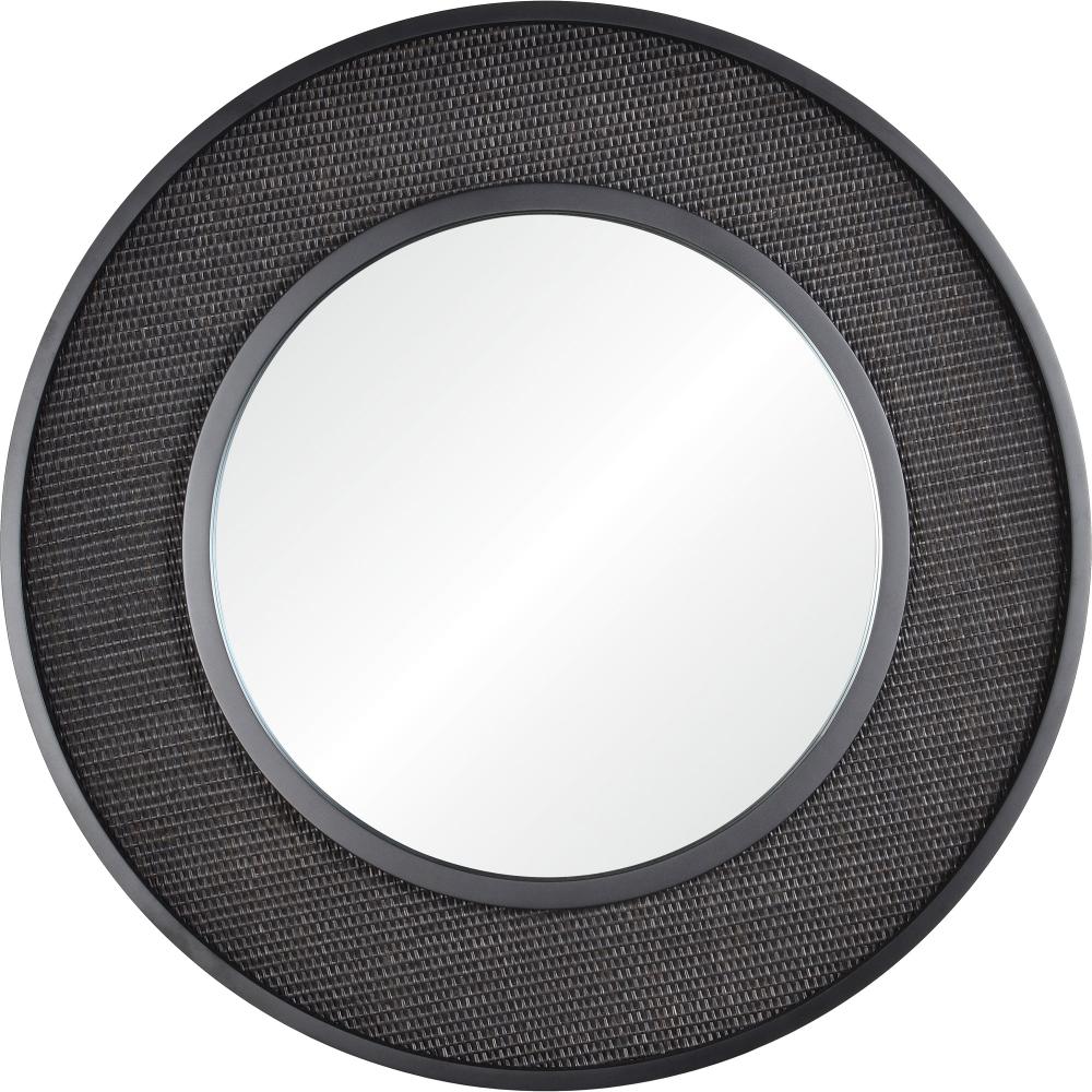 Going above and beyond utility, this mirror design serves as a work of art within the contemporary space. Showcasing rattan in a black palette with a black veneer frame, it holds a bolder, sleeker quality than the traditional natural aesthetic. At 35 inches in diameter, it has a versatile structure that can go from the hallway to the dining room and beyond.