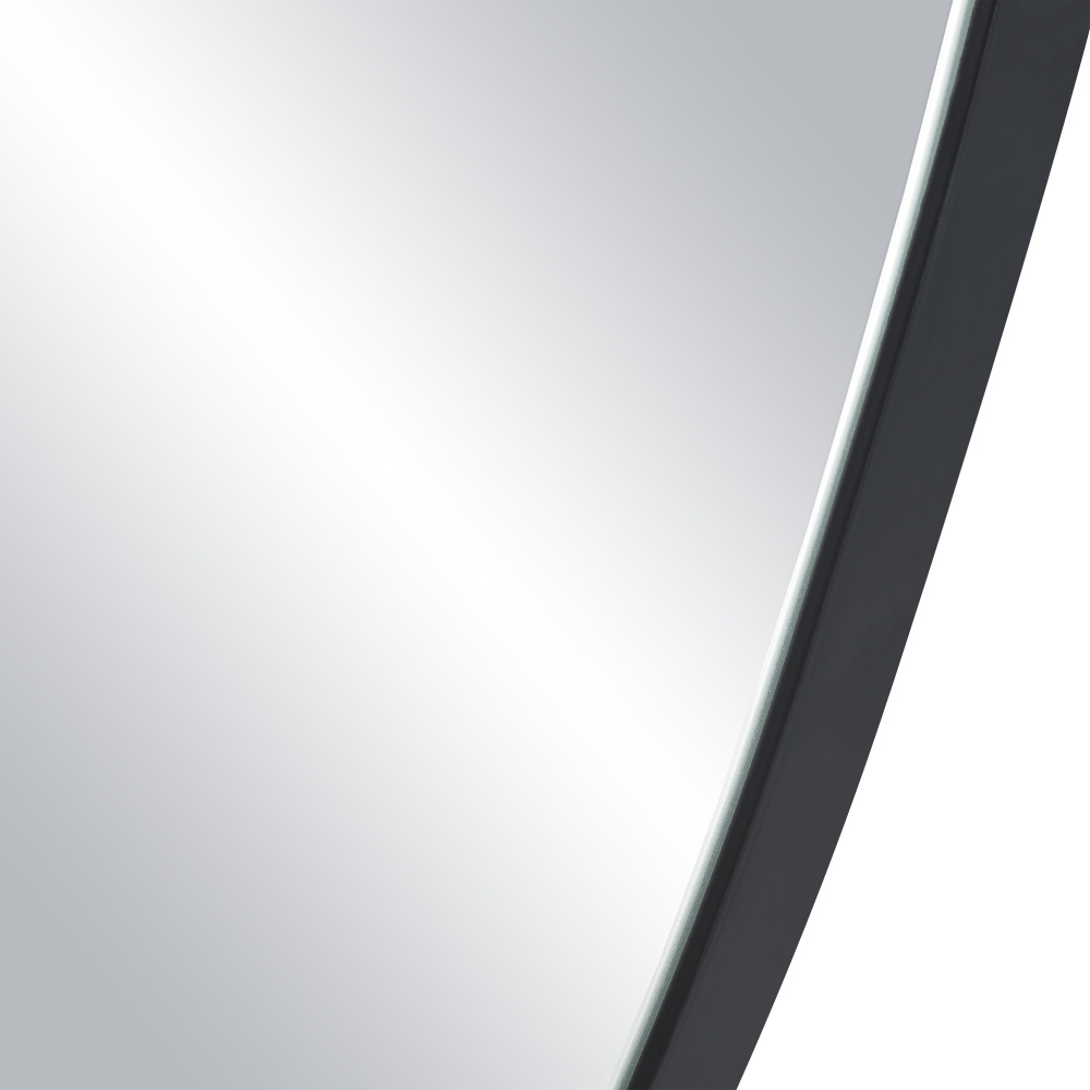 Step away from straight lines and try something new with the Jane mirror. It features a curvy organic form and a sleek matte black powder-coated frame to bring a light and airy feel to any room. Crystal clear mirror glass ensures a distortion-free reflection you can only get with high-quality mirrors. Measuring nearly 4 feet long, it makes for a great alternative to a standard full length mirror when hung vertically and would also look beautiful displayed horizontally as a focal point over a fireplace, sofa or dresser. The choice is up to you thanks to a 4-way hanging D-ring system that lets you hang it to suit your needs.