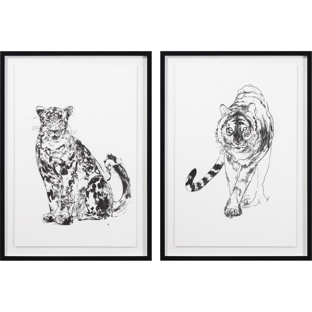When set in the mid-century modern interior, the fiery energy of wild cats jumps off the paper prints and into the room. Whether set side-by-side or apart, the printed portraits of a tiger and leopard will never go unnoticed. A black frame and shadowbox build adds dramatic dimension to each piece.
