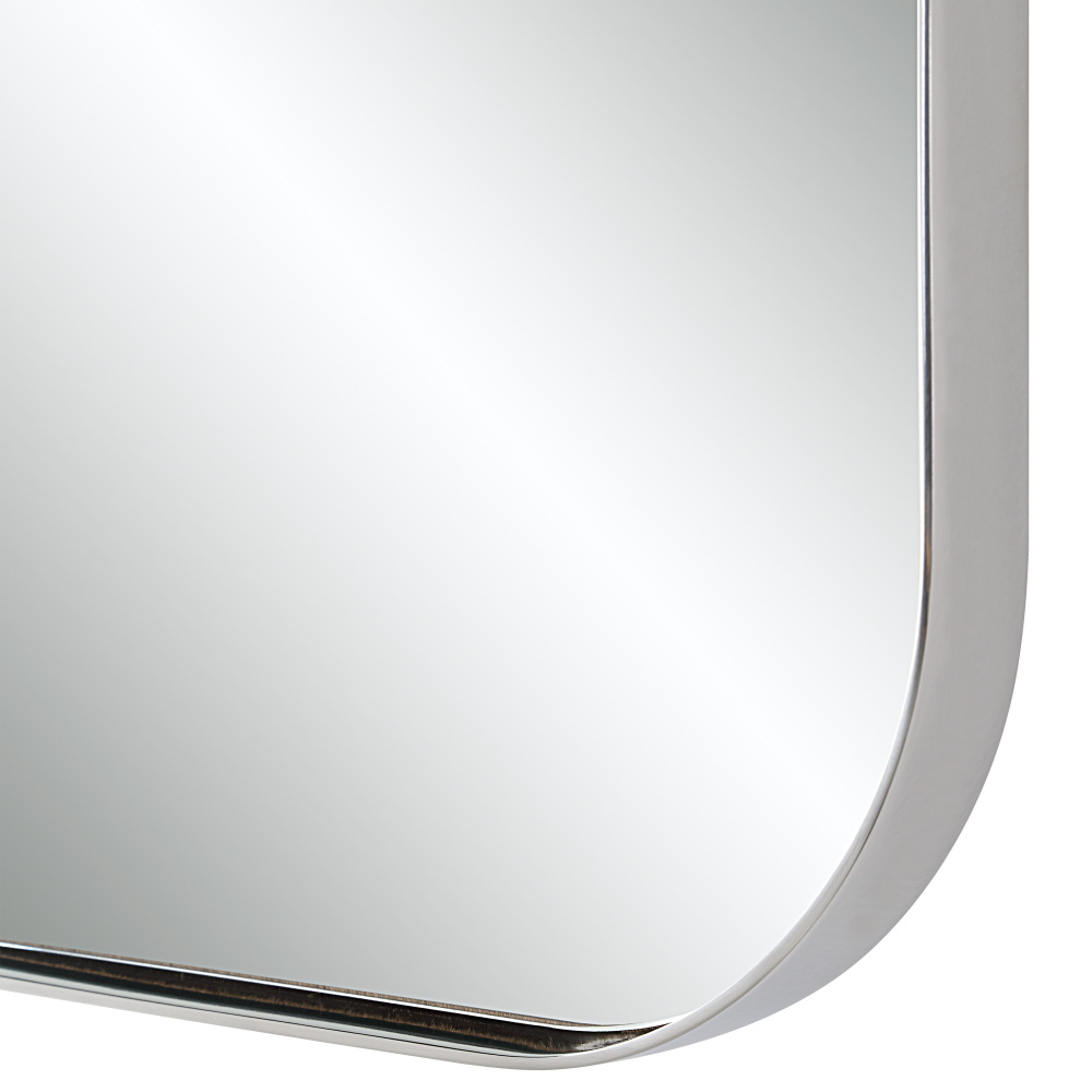 Your search for the perfect modern mirror stops here. Designed with gently rounded corners and an enduring stainless steel frame, it offers an aesthetic that suits today’s contemporary interiors. Outfitted with high-quality mirror glass for a distortion-free reflection, this simply styled mirror will quickly and easily elevate any space.