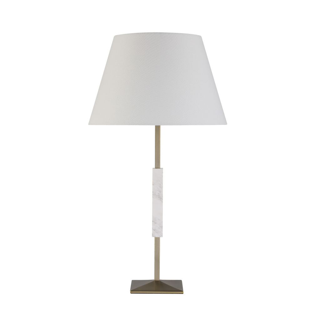 Known as the "Carrara of Greece", Volakas marble is often used in modern and classic applications such as this transitionally styled table lamp. Its off-white linen shade diffuses an ambient glow as it sits upon a body made of natural honed white marble with champagne-plated accents. Perfect for elevating any stylish interior, add this gorgeous lamp to your decorating plan, today.