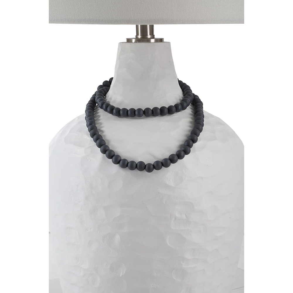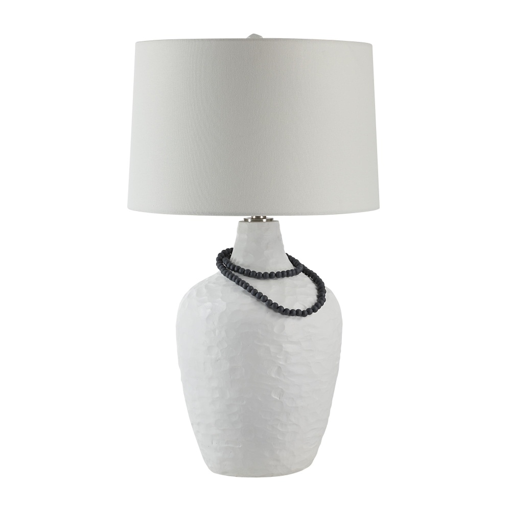 Anyone looking to add light and style to their home or office will want to get to know the Naranja table lamp. Crafted with a clean and simple silhouette, its white body is adorned with a whimsical necklace-inspired strand of beads that lends a casual fashion-forward vibe to any decorating scheme. Great for adding stylish illumination anywhere it sits, try one or a pair in any room for an instant update.