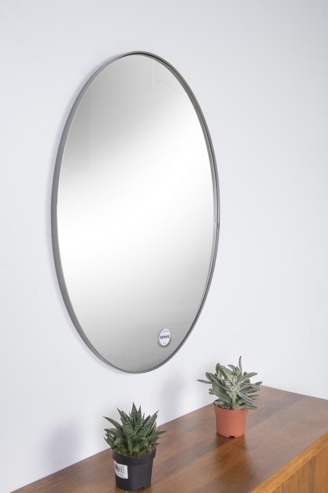 The sleek Scandinavian profile of this oval wall mirror is elegant and understated. The oval mirror features an antique brushed silver finish that adds a subtle shimmering patina to the iron frame. The curvature of the elongated mirror shape disrupts the linear angles of traditional architecture, with an elliptical format that’s designed to inspire.