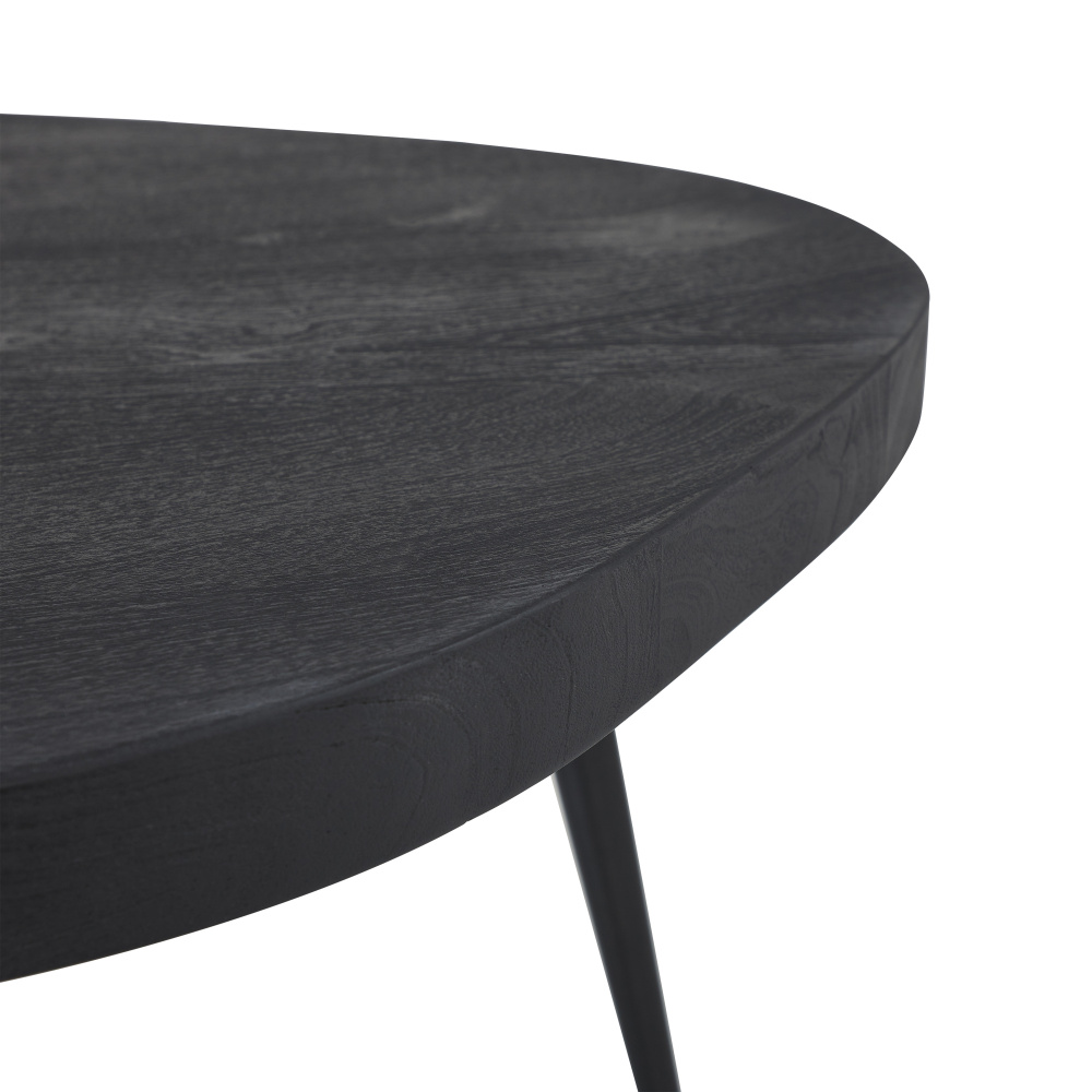 From the drawing board of Canadian television host, artist and designer, Steven Sabados comes the stunning Parson coffee table. Crafted with high-quality natural materials, it features an almost handmade look for a one-of-a-kind result. Its black sandblasted mango wood tabletop sits on 4 tapered matte black iron legs for a dramatic result that punctuates any room with a bold shot of drama. The perfect surface to create a beautiful coffee table vignette, simply add your favorite decor for an instant focal point. Bring this striking furniture piece into any living room for a sleek and sculptural impact that demands attention.
