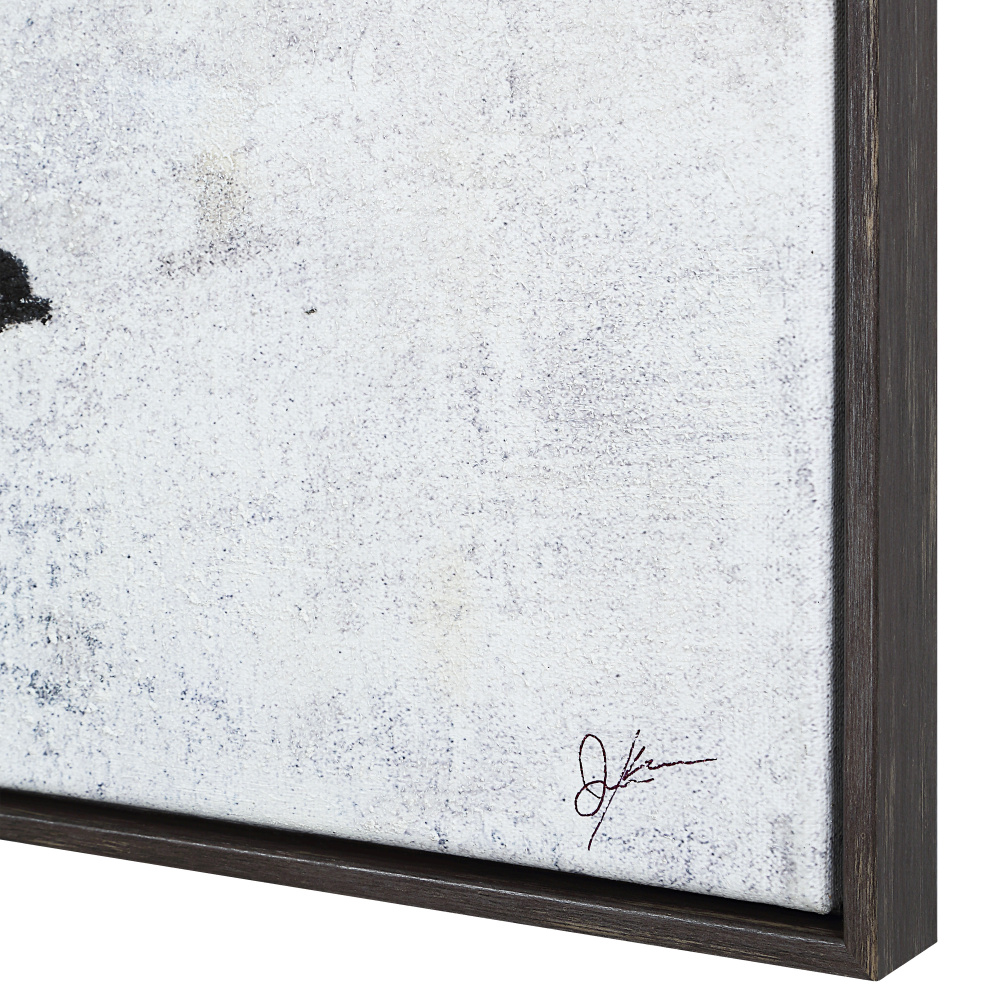 Embrace natural beauty and a free-spirited vibe in any interior with this oversized modern painting. Simplicity rules the roost in a display of stylish silhouettes sprawled across a blue sky on this high-quality cotton-linen canvas with hand-applied texture. Finished with a grey wood frame, this piece is ready to take flight in your design project.