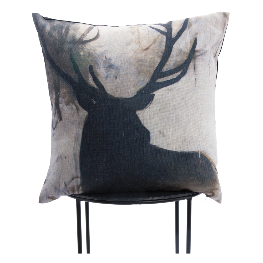 Compose a chic pillowscape on couches and beds with the traditional style of this decorative pillow. Printed in graphic detail on a square pillowcase, shades of black and gray capture the silhouette of a majestic stag with a rustic design that turns an ordinary cushion into a captivating work of art. A sumptuous combination of duck feathers and down fill the standard pillow sham with enduring softness, offering comfortable cushioning for every seating or sleeping arrangement.
