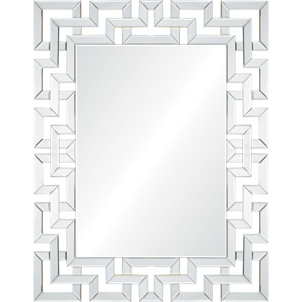 The modern living room takes on a designer quality with this wall mirror. Featuring an intricate pattern around its all-glass structure, it strikes the perfect balance of trendy and timeless. Set against a vibrant background, this piece will truly pop.