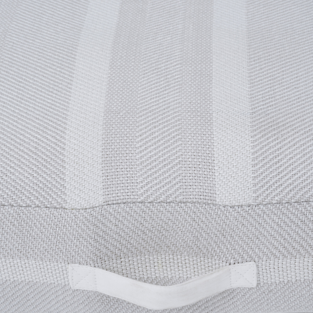 Upgrade your living room decor with the stunning Rousseau 30" Wide Floor Pouf. This high-quality pouf is crafted with 100% pet construction, ensuring durability for years to come. With a robust weight capacity of 154.3 to 176.37 lbs, it can easily hold multiple people at once. The unique woven stripes detailing and sleek gray and ivory finish make it a standout piece in any interior design scheme. The pouf's functionality is perfect for additional seating or as a comfortable footrest.