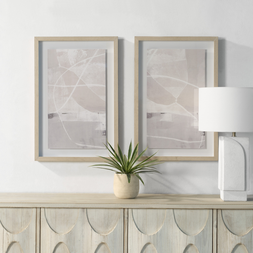 The Rovereto set of two framed printed art is the perfect choice to add impact to your space. Each frame measures a generous 20” x 30” making them a great pairing as a big and bold impact over a dining room buffet, behind a living room couch, above a bed, or anywhere else your imagination takes you. Printed in neutral tones on rag paper and enclosed behind glass with a floating mount this wall art delivers an artisanal effect in any interior. Framed in rustic yet modern cream-finished wood, this set is ready to hang thanks to its convenient 2-way D-ring hanging system.
