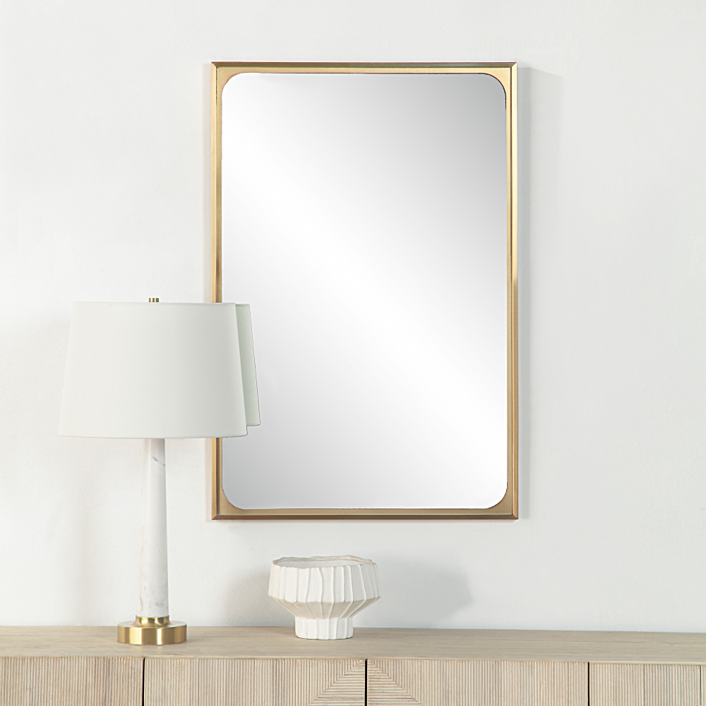 Create a bold and modern statement with the Sati 36" Tall Rectangular Mirror in Burnished Brass. This sleek, rectangular mirror is constructed with high-quality and durable stainless steel, ensuring longevity and style. Equipped with a D-Ring hanging system, setting up this mirror is a breeze, and with its four-way hanging options, you'll enjoy versatile display options that cater to your preferences. Its burnished brass finish exudes sophistication and elegance, making it an ideal addition to various decor styles, while its bold size ensures it'll capture everyone's attention.