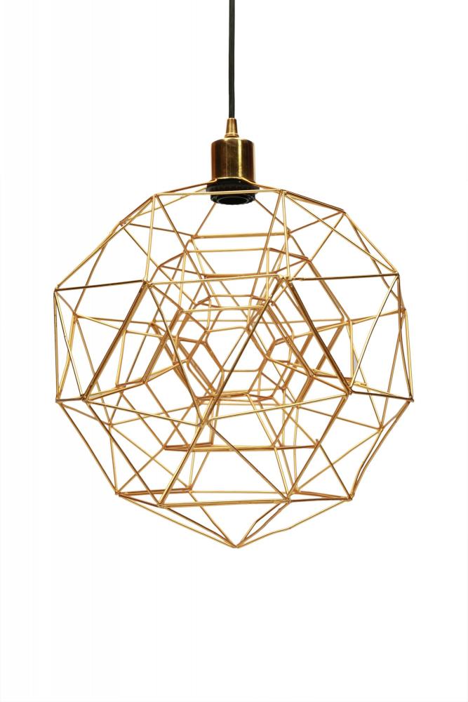 Inspire architectural envy with the geometric design of this modern ceiling pendant light. Individual iron rods are welded together to form the tessellated structure of the open metal shade, while a gold powder-coated finish accentuates every angle. The complex beauty captures everyone’s attention when installed as the featured lighting option in an entryway or above a dining table. Lightbulbs are included.
