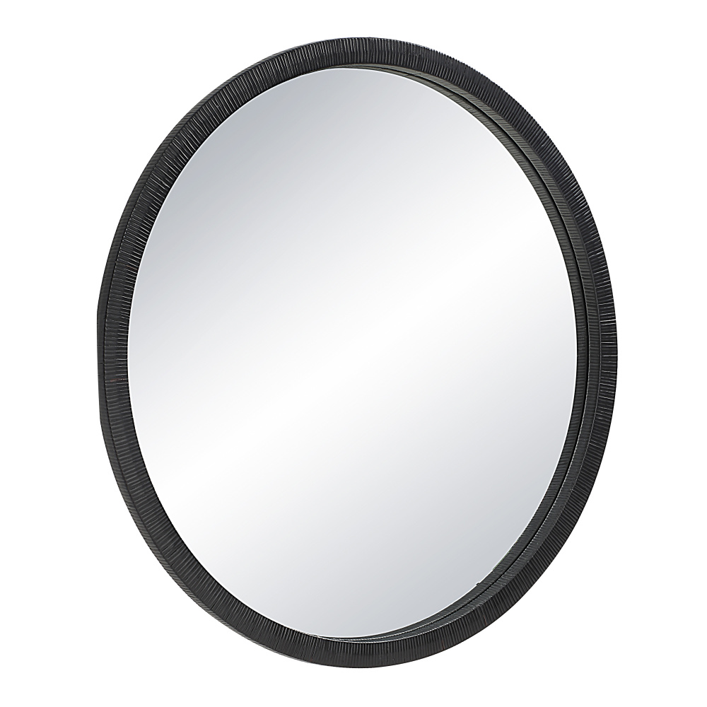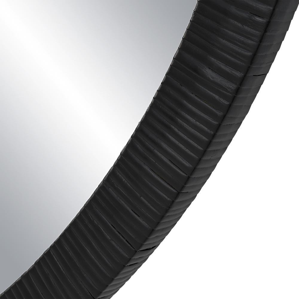 Bring a sophisticated yet laid back look to any space with the Solo round wall art mirror. Featuring a rattan wrapped frame with a black-painted finish, it’s loaded with texture and drama. Offering a generous 48” diameter, it’s perfectly sized for creating a large-scale impact in your design project. D-ring hardware makes installation a breeze so as soon as this mirror arrives to its new space, it’s up and ready for action. Hang it over a fireplace, in an entryway, in a bedroom, or anywhere your creative mind dictates.