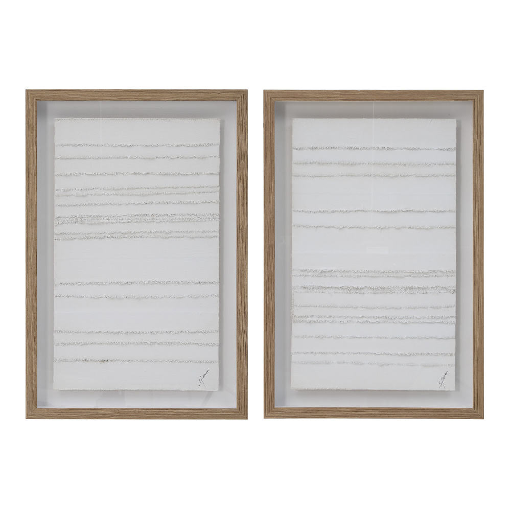 High style is a wrap when you have this unique wall art set from Canadian television host, artist and designer, Steven Sabados as part of your decorating plans. Each canvas is artistically wrapped with cotton strips, creating a textured base for its hand-painted finish. Encased under glass in a beautiful walnut shadowbox, it’s perfect for putting the final touch on any room.