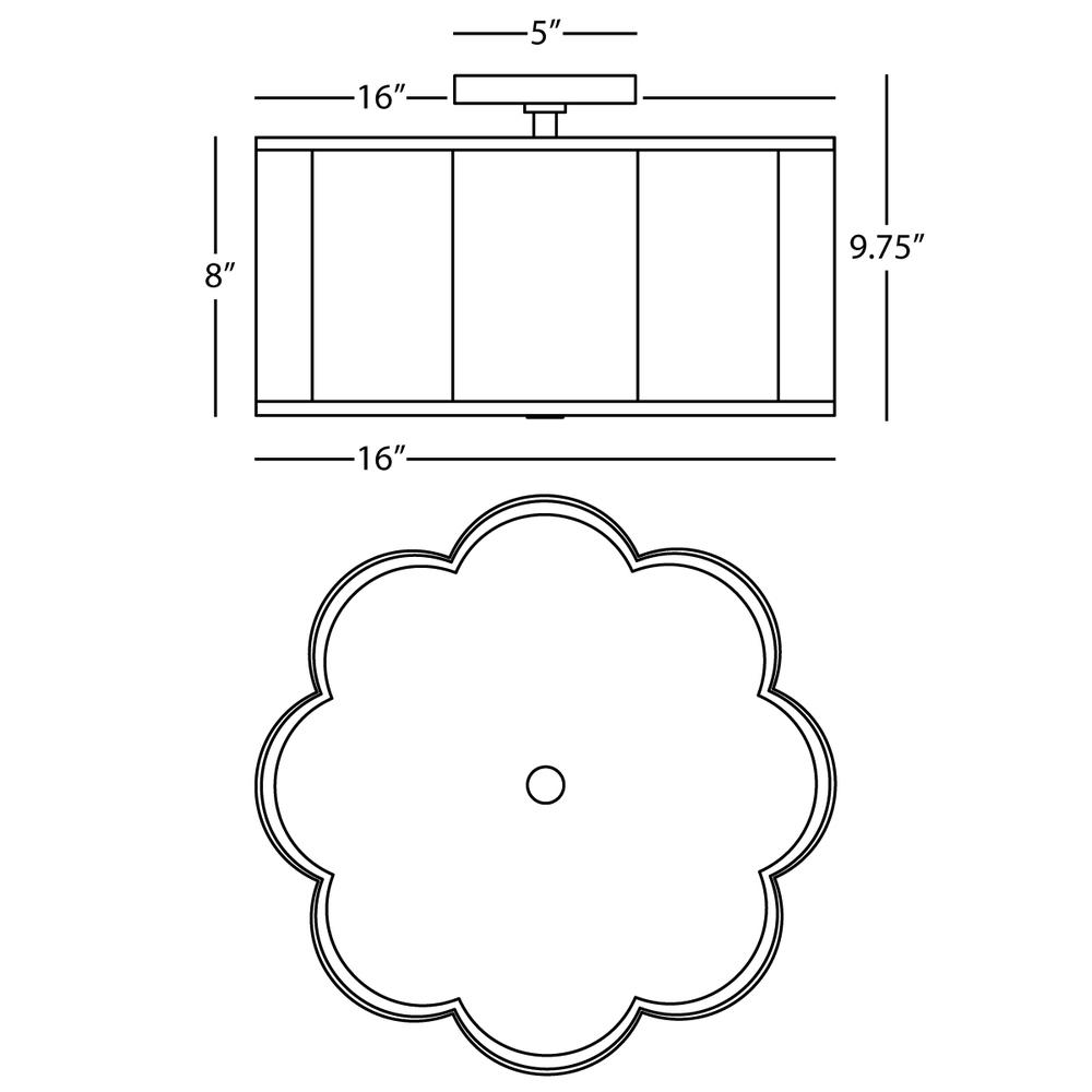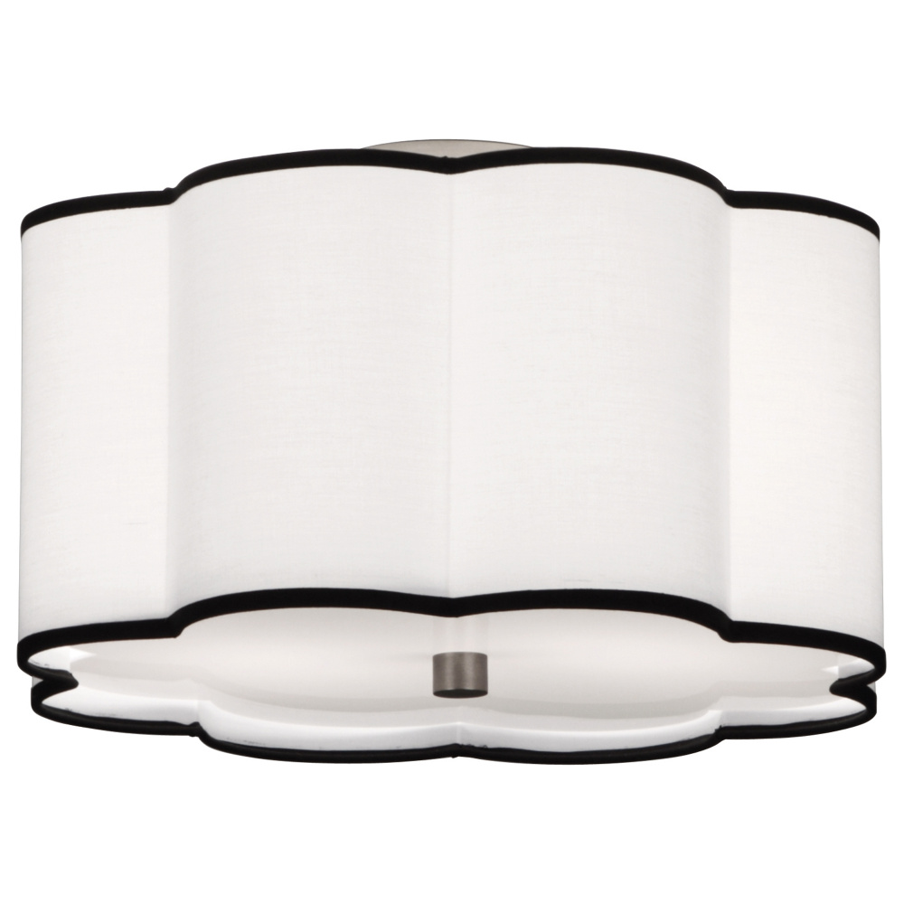 Blackened Antique Nickel Finish Axis Flushmount with Scalloped Ascot White Fabric Shade with Contrasting Trim - Axis features a scalloped design that diffuses the light in a most inviting way and also adds an elegant touch that is subtle and charming.