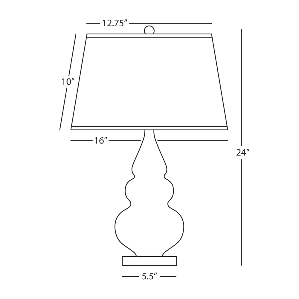 Our Triple Gourd collection features a simple but gracefully curving silhouette. Available in a wide array of vibrant colors and several different base finishes. - Celadon Glazed Ceramic with Lucite Base Small Triple Gourd Accent Lamp with Pearl Dupioni Fabric Shade