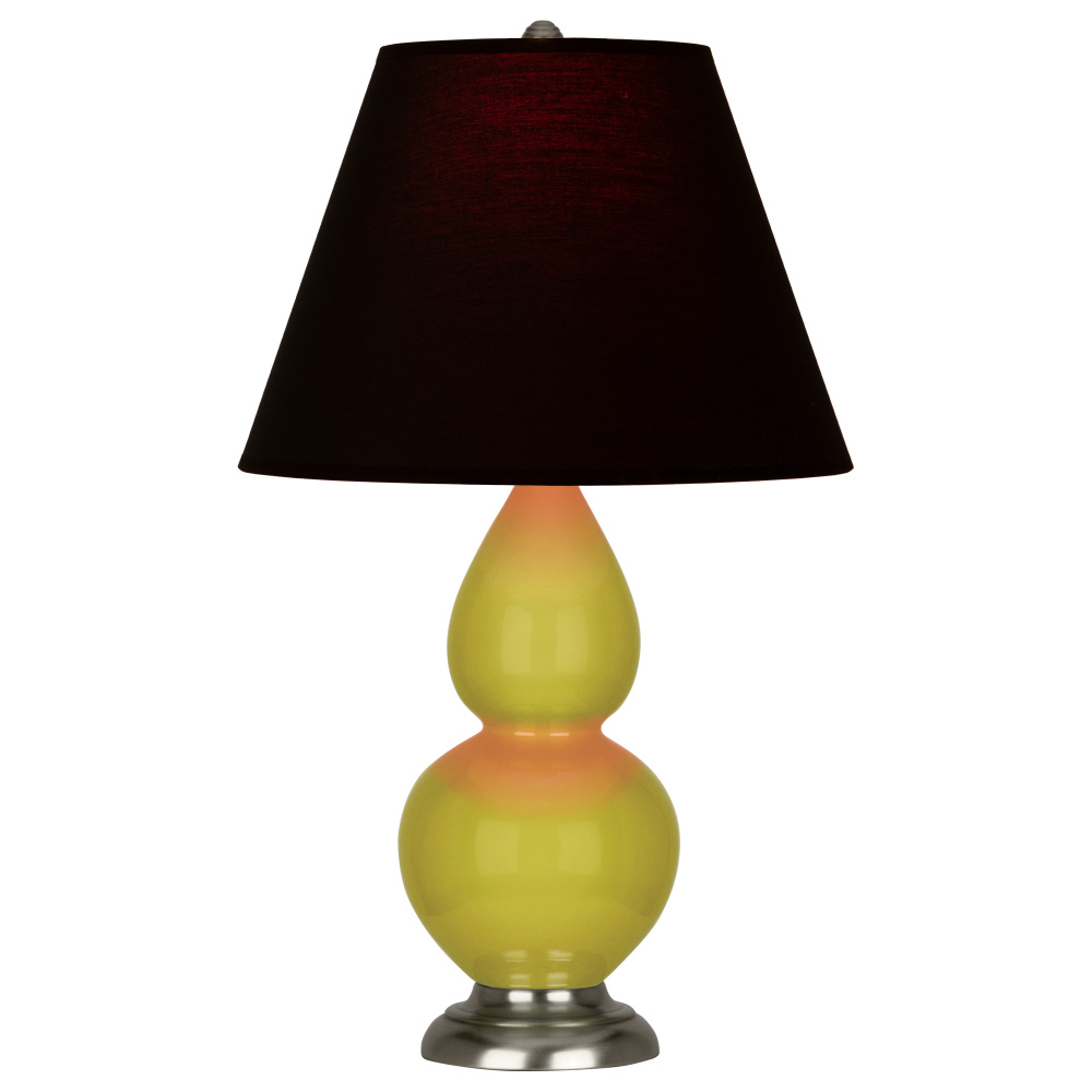 Citron Glazed Ceramic with Antique Silver Finished Accents Small Double Gourd Accent Lamp with Ink Fabric Shade with Rose Red Lining - Our Double Gourd collection features a simple but gracefully curving silhouette. Available in a wide array of vibrant colors and several different base finishes.