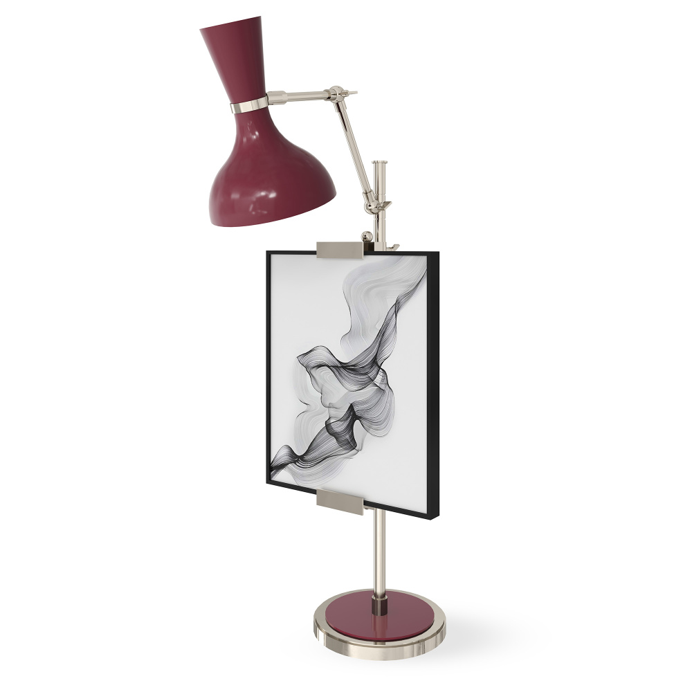 Polished Nickel Table Easel w/ Sugar Plum Painted Shade