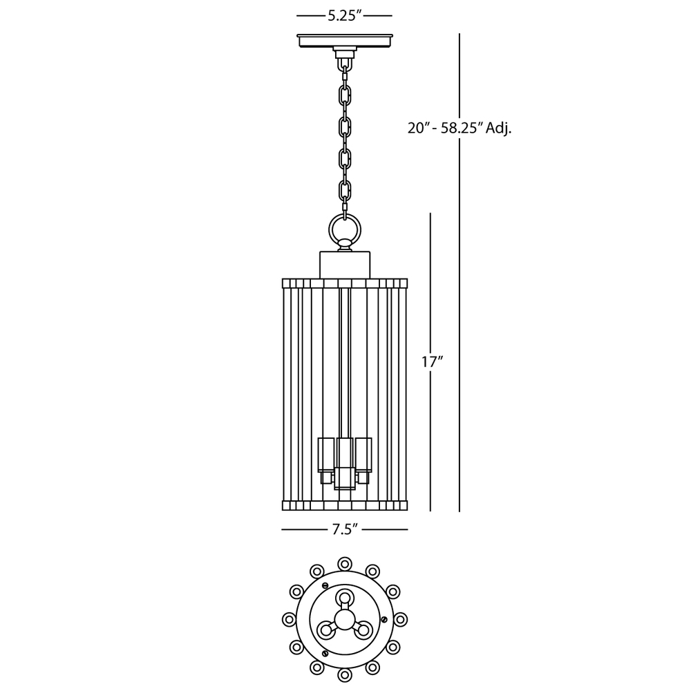 Polished Nickel Finish Cole Pendant with Clear Glass Rods with Clear Inner Glass Shade - The Cole pendant is comprised of clear glass rods that encircle three exposed bulbs, casting ample and luxurious light while sleek metal framework creates a stunning contrast in materials.