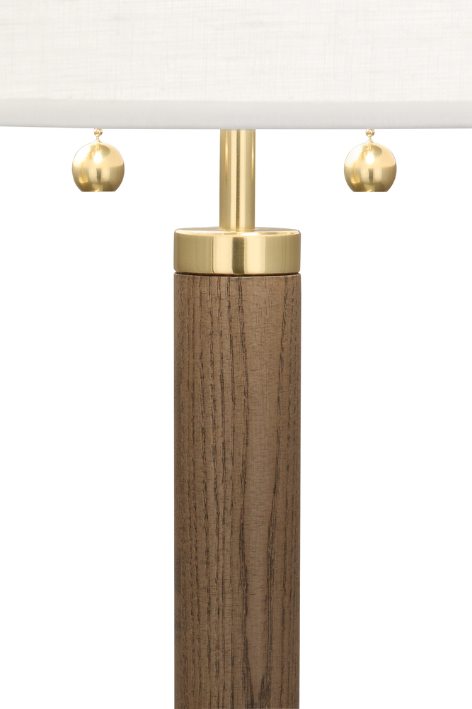 Modern Brass Finish with Walnut Finished Wood Column Dexter Table Lamp with Oyster Linen Shade - Polished, smooth and impressive, our Dexter table lamp is an elevated style based on retro elements Inspired by iconic Mid-Century Modern houses and decor in Palm Springs, Dexter exudes a cool, chic vibe that is timeless and fresh.