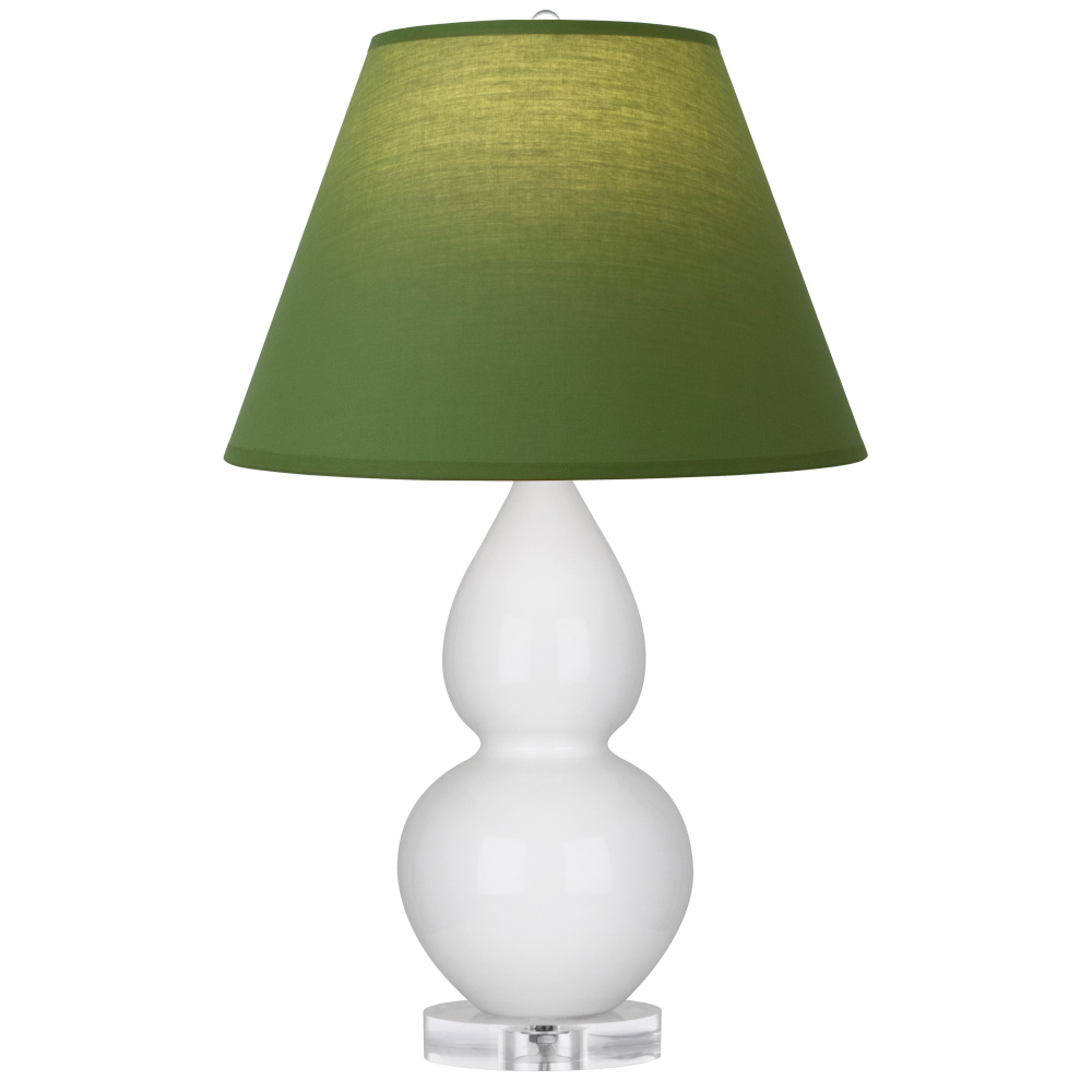 Lily Glazed Ceramic with Lucite Base Small Double Gourd Accent Lamp with Tea Green Fabric Shade with Taupe Lining - Our Double Gourd collection features a simple but gracefully curving silhouette. Available in a wide array of vibrant colors and several different base finishes.