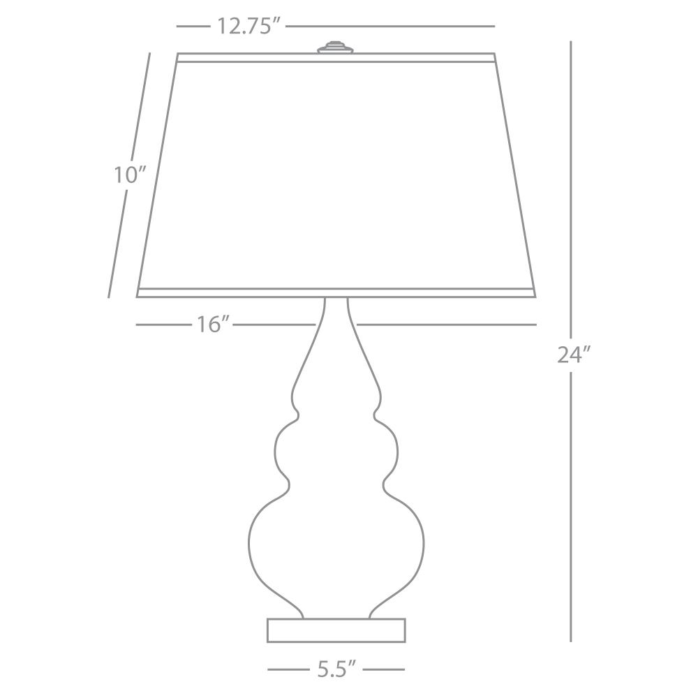 Our Triple Gourd collection features a simple but gracefully curving silhouette. Available in a wide array of vibrant colors and several different base finishes. - Celadon Glazed Ceramic with Lucite Base Small Triple Gourd Accent Lamp with Pearl Dupioni Fabric Shade
